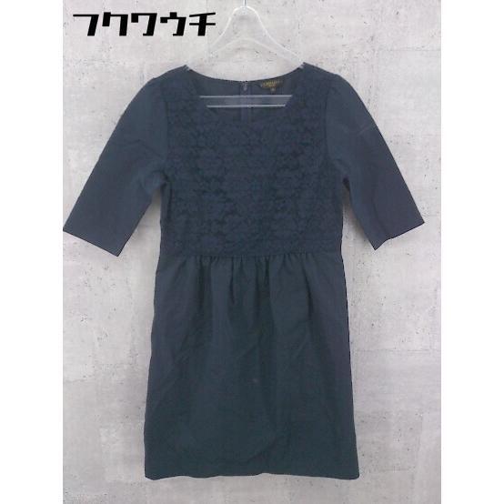 ◇ LAPIS LUCE BEAMS レース 切り替え 七分袖 膝丈 ワンピース サイズ38 ネイビー レディース
