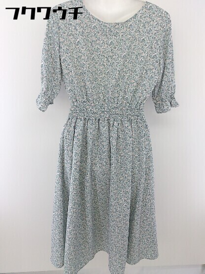 ◇ OLIVE des OLIVE オリーブ デ オリーブ 花柄 五分袖 膝下丈 ワンピース サイズF ブルー マルチ レディース