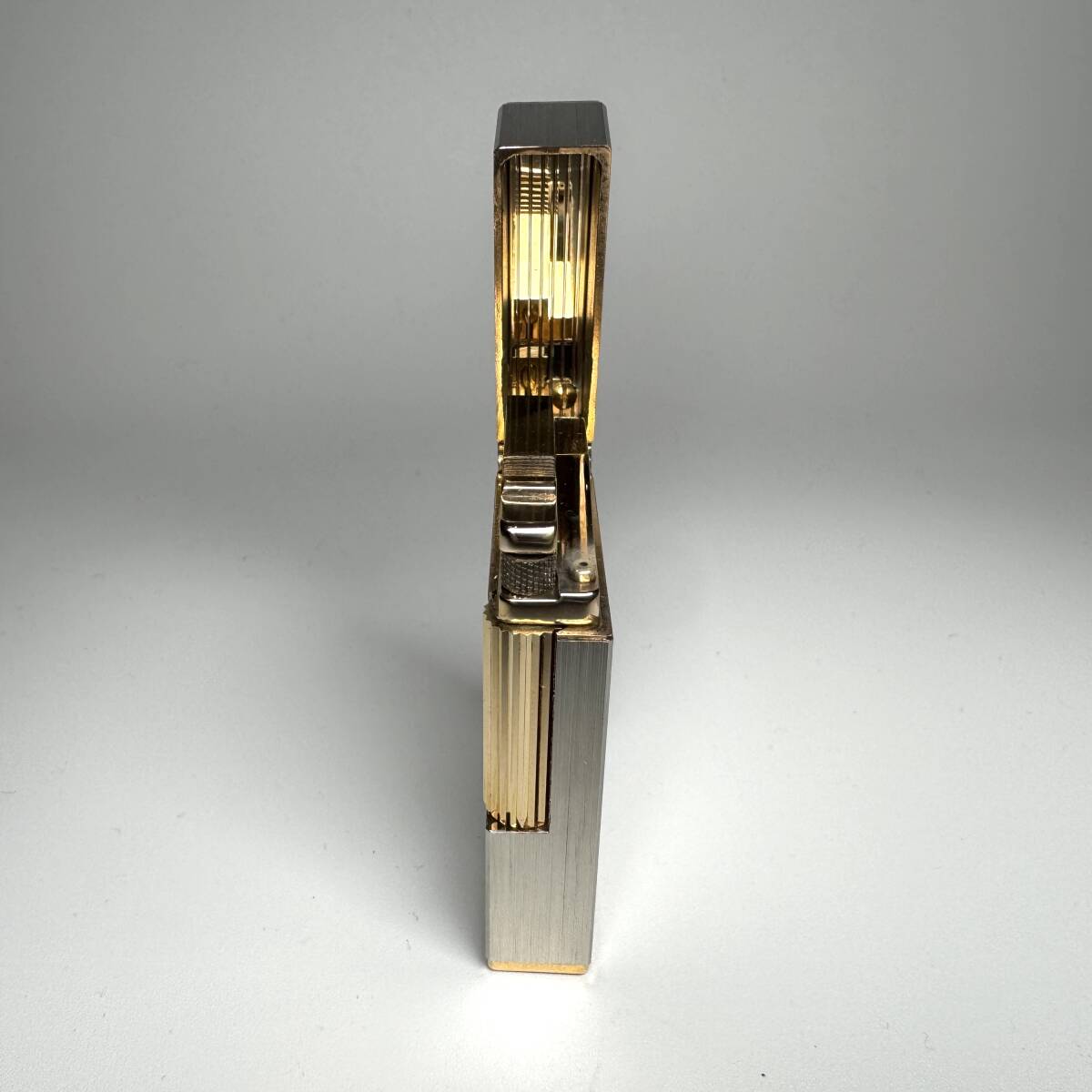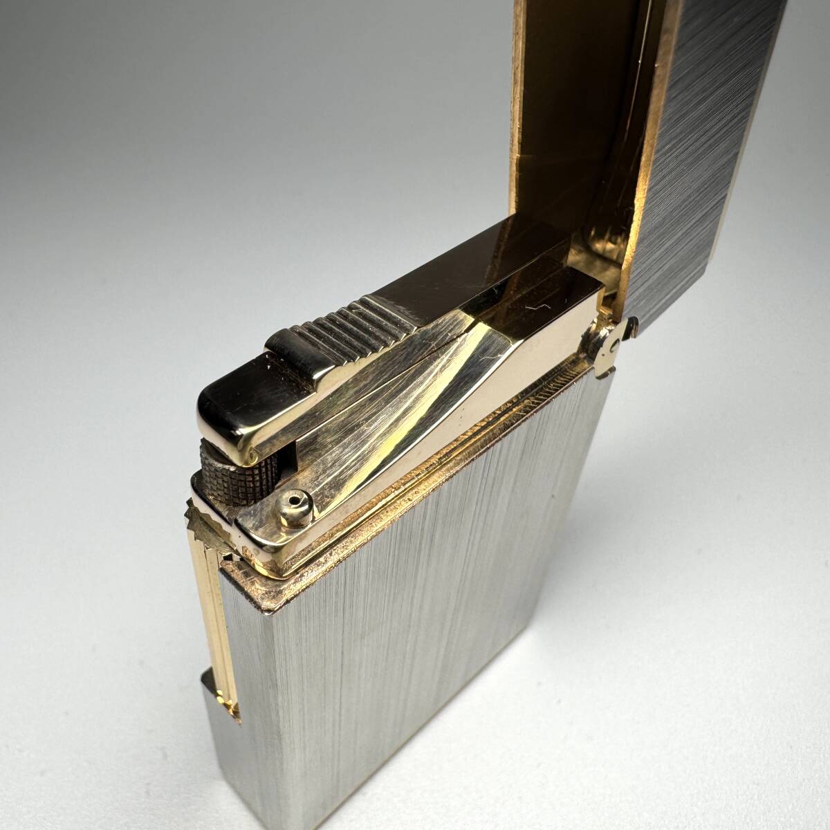 【極美品】 S.T.DUPONT デュポン ライン2 ヘアライン ライター シルバー/ゴールド スクエア型 ローラー式 喫煙具 ガスライター フランス製