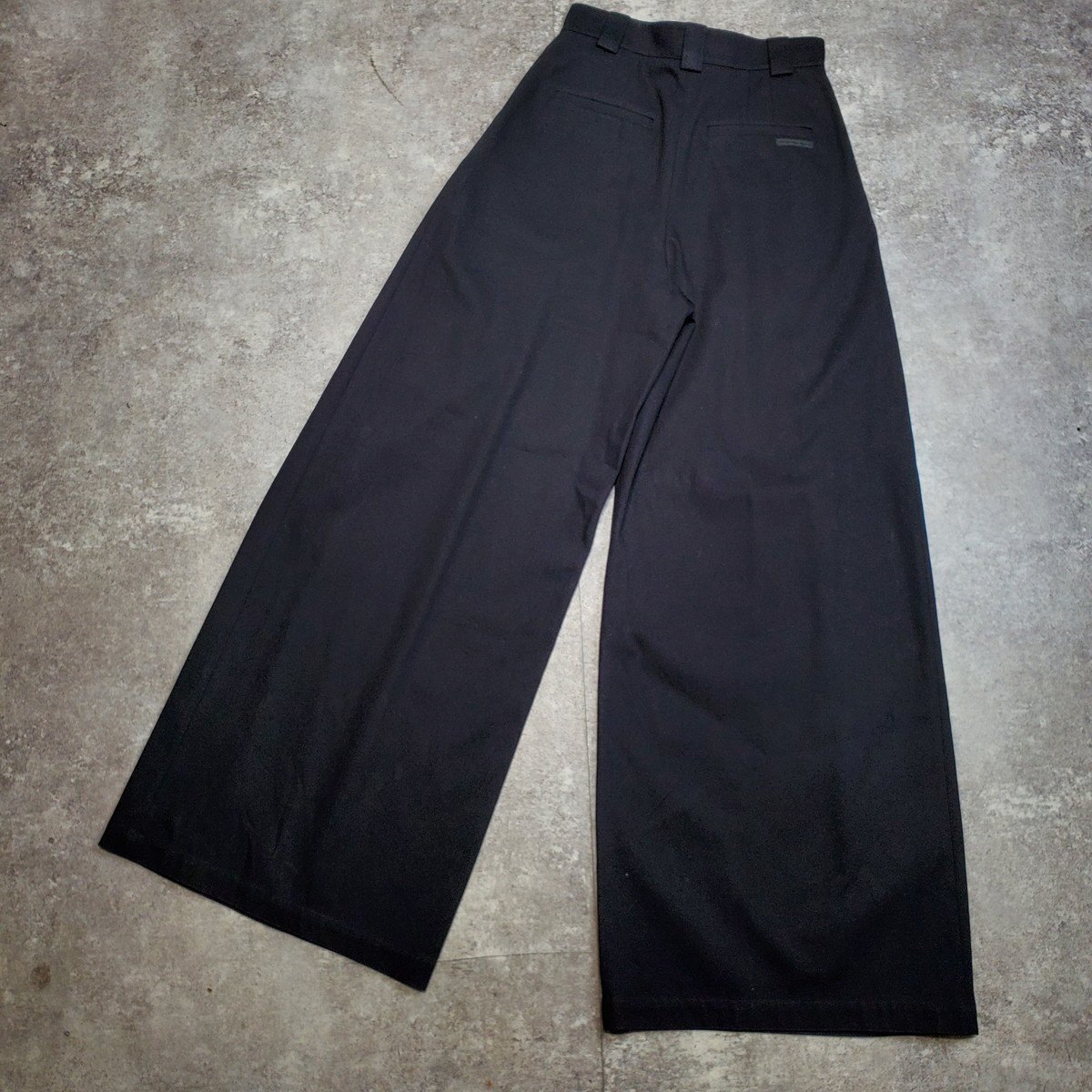 | STAFF COMMENT | ALEXANDER WANG 24AW コットンギャバジン2タックハイウエストロングレグトラウザーズです。アレキサンダーワン 2024秋冬 プレフォールコレクション ルック2 にて着用されているアイテムです。かなり厚手のコットンギャバジン生地を使用しており、長いレングスなのでブーツやスニーカーなどで溜めて着用すると独特のシワが浮かび上がります。ハイウエスト仕様。深く折り込まれたタックが二つ入っており上質なシルエットとなっております。ウエストが合えば性別問わずオススメしたい1着。若干の使用感はありますがまだまだ着用していただけます。 |