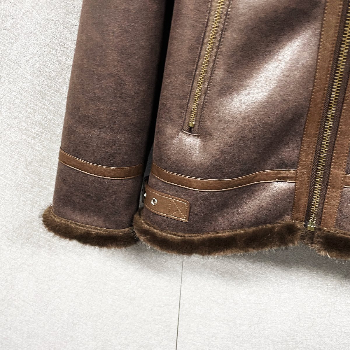 定番の無地デザインで落ち着いた高級感あふれる雰囲気となっております。両サイドにファスナー付きのポケット2つがあり、普段外出するものを収納できます。シルエットは程よいリラックス感があり、こなれた雰囲気の着こなしがお楽しみいただけます。スタンドカラーが衿元をすっきりと演出します。本革の防風性×ファーの防寒性×ライダースのデザイン性を同時に兼ね備えた真冬のレザージャケットです。