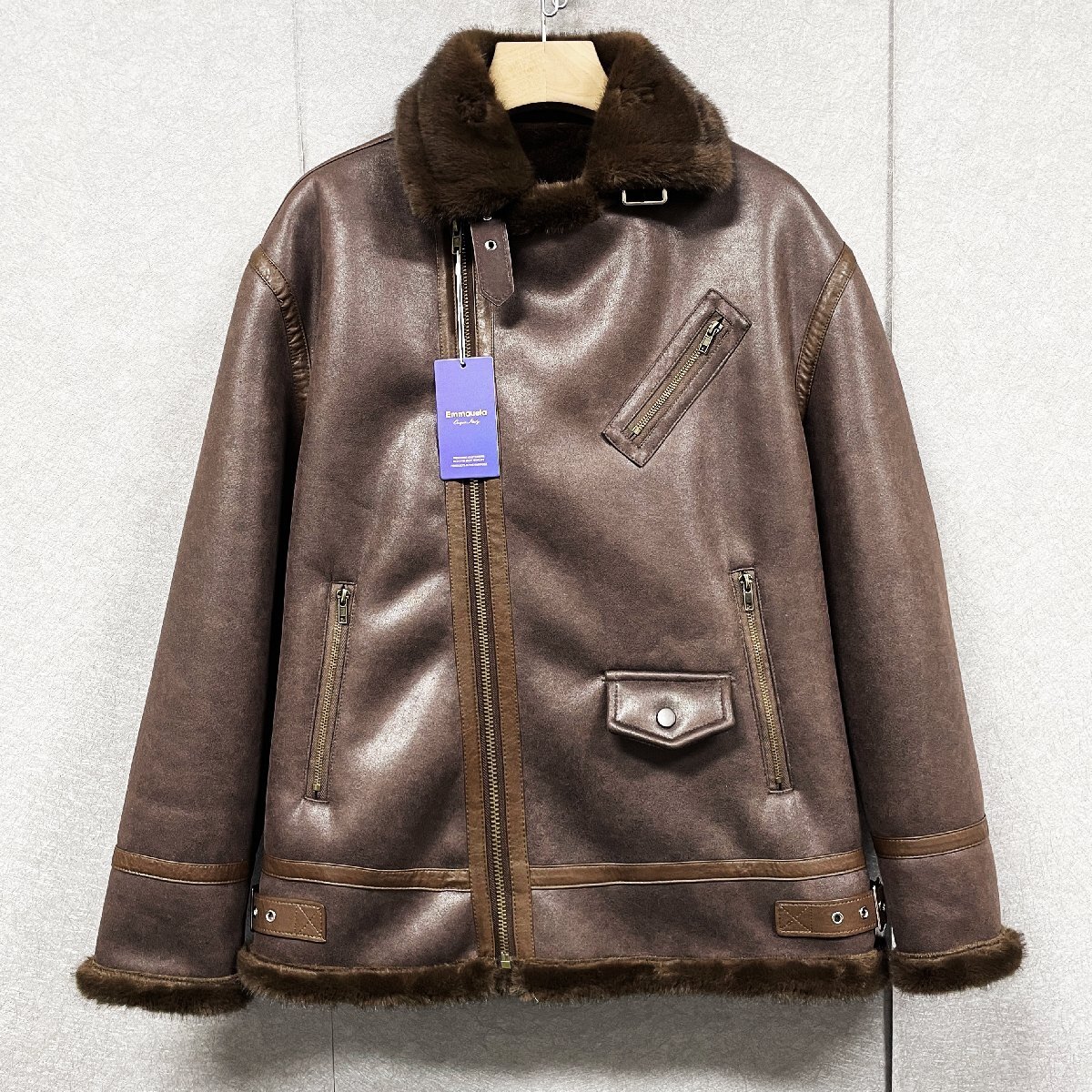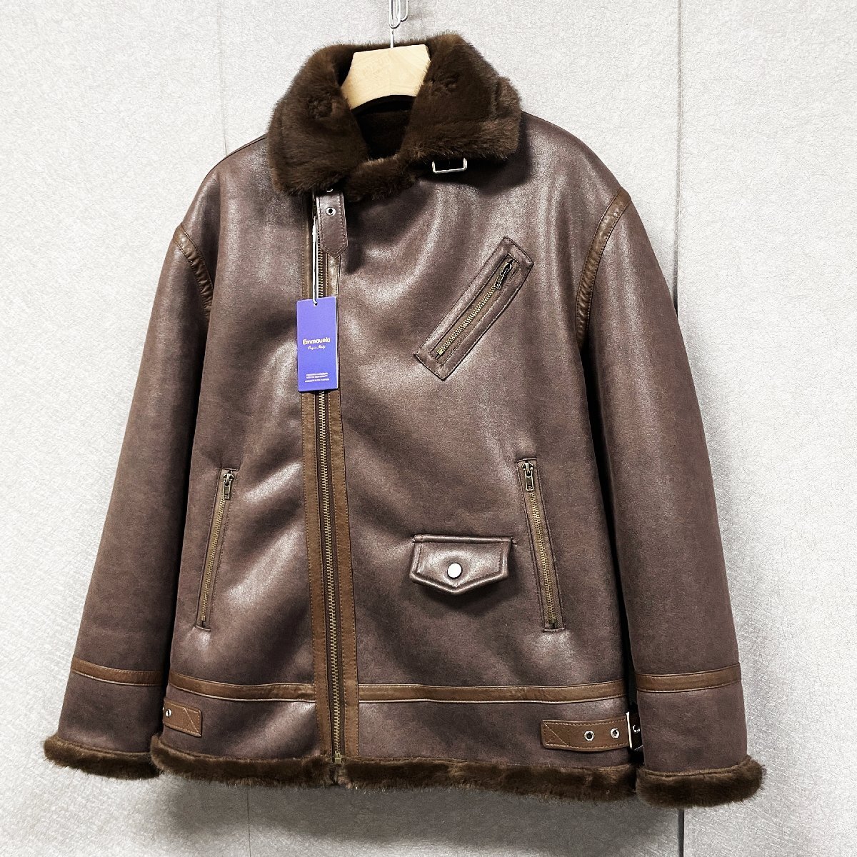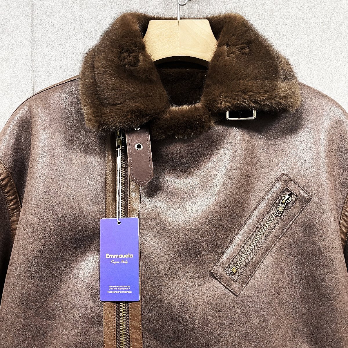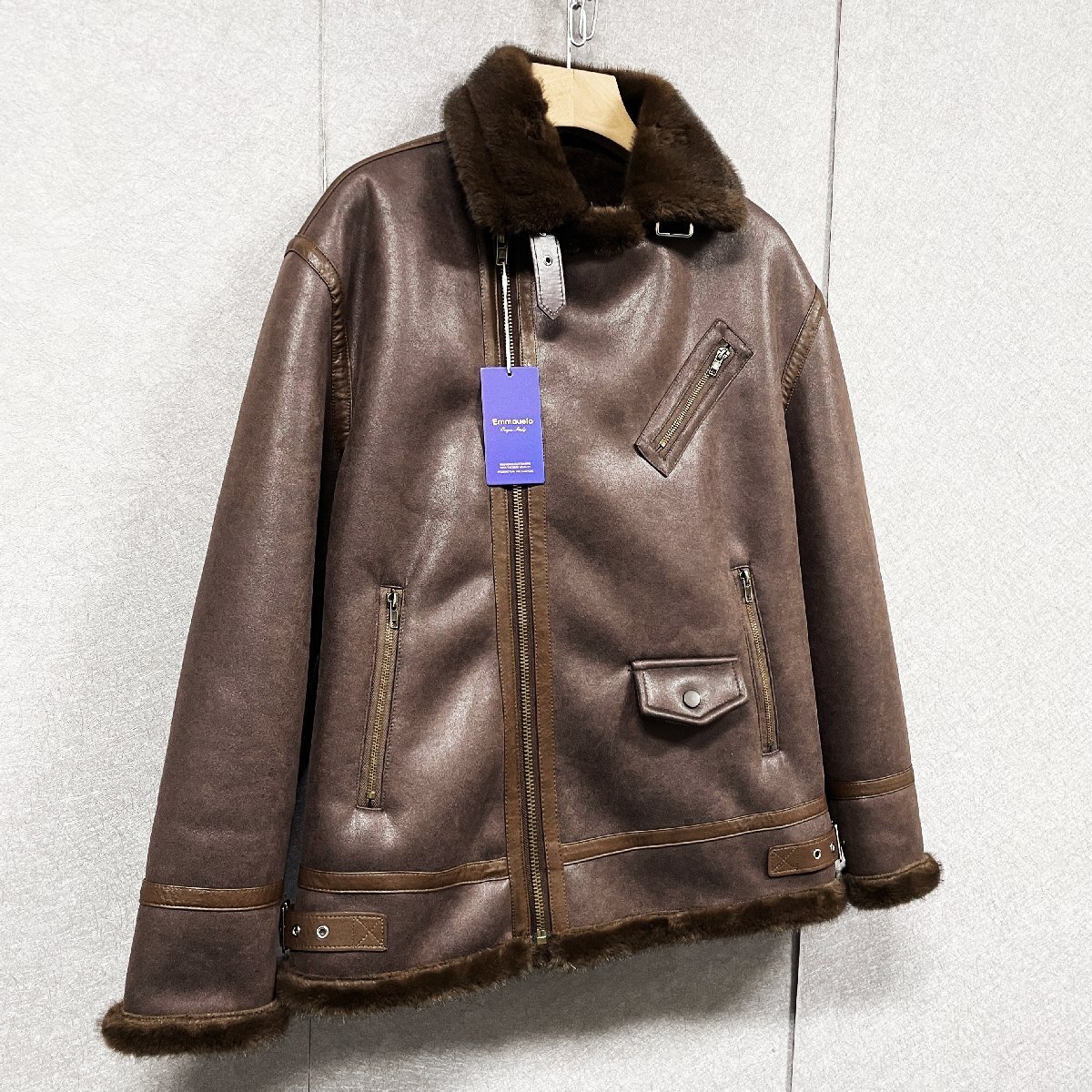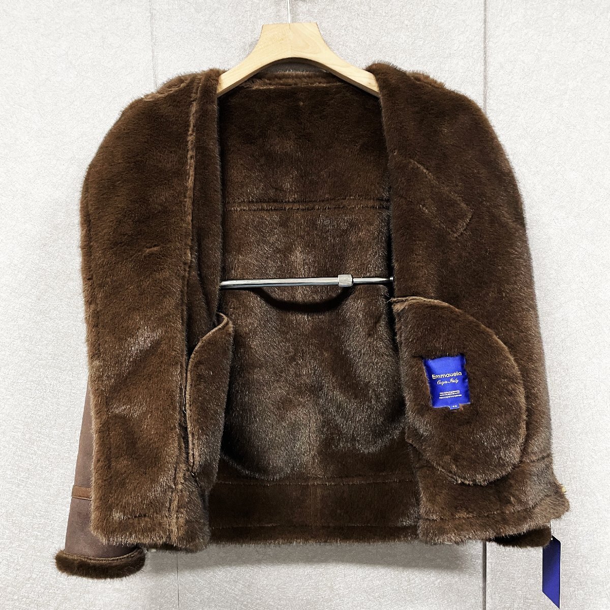上級・レザージャケット 定価14万◆Emmauela・イタリア・ミラノ発◆高級羊革 本革 厚手 防寒 ソフト 滑らか 裏起毛 ライダース 革ジャン XL/50サイズ