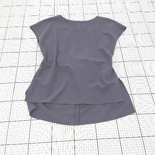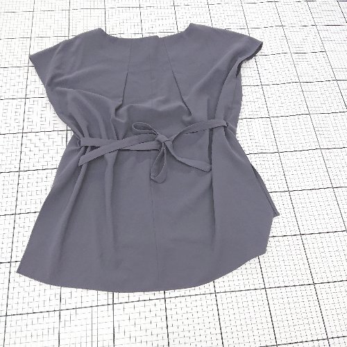 ◇ ⊂ PLST プラステ リボン サイドスリット フレンチスリーブ ブラウス カットソー サイズS ダークグレー系 レディース E