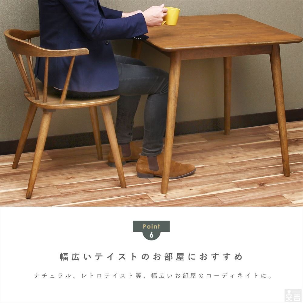 | テーブル | 【型式】CT-75 【寸法(mm)】約750mm×750mm×高さ720mm 【材質】ラバーウッド ラッカー塗装 【商品重量】約 11.5kg 【カラー】ダークブラウン 【仕様】組立式 |