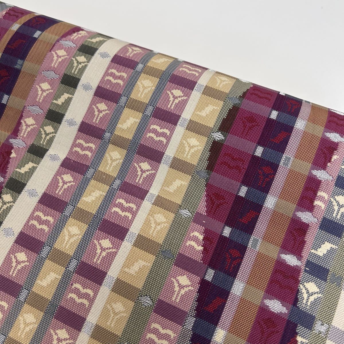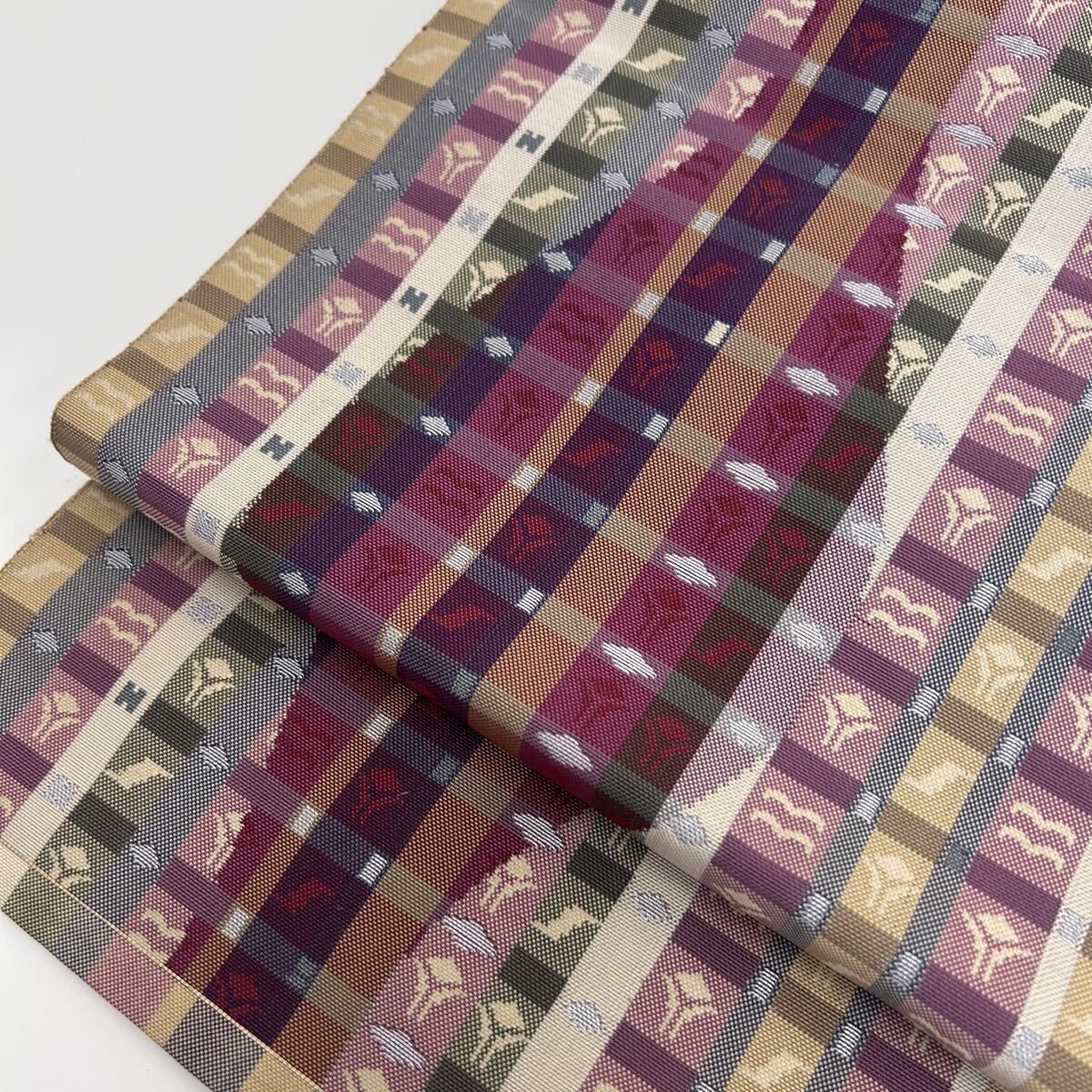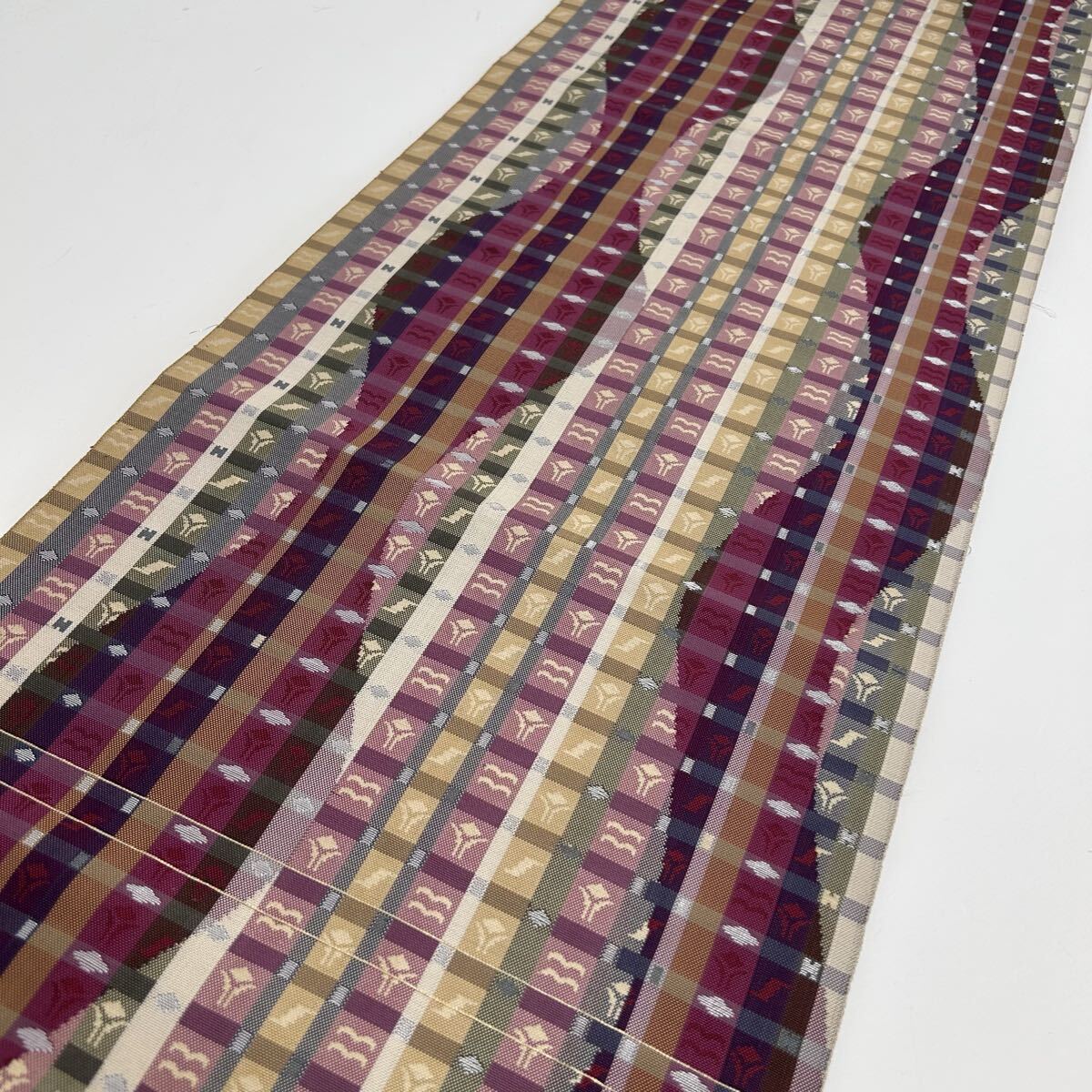 名古屋帯 正絹 間道格子 立涌 上品な織柄 八寸 着物F-2354