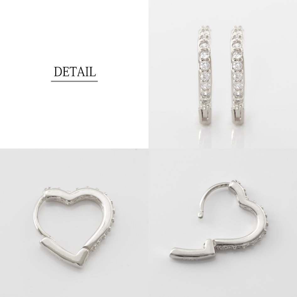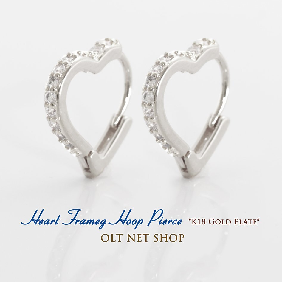 新品/フープピアス/K18GP/レディース/ハート/ピアス/おしゃれ/シンプル/ダイヤ/シルバー/18金/ホワイトゴールド/オープンハート/女性/プレ