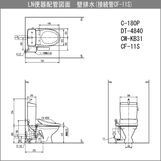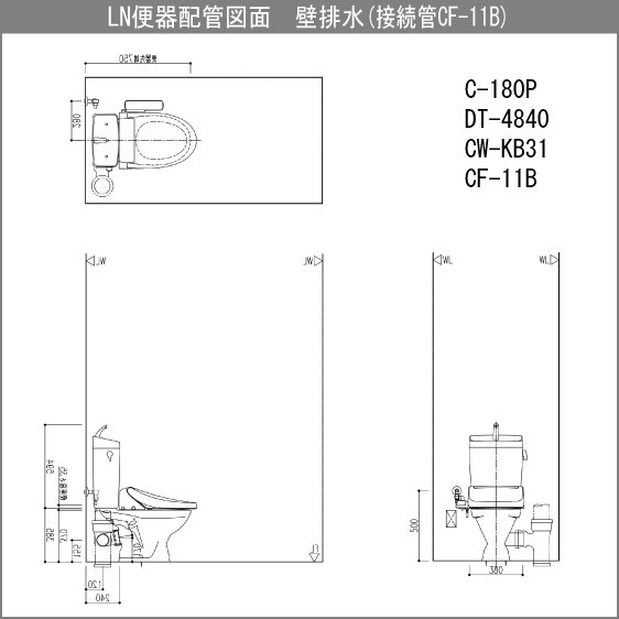 便器 LN便器(手洗付・壁排水) シャワートイレセット C-180P,DT-4840,CW-KB31 リクシル イナックス LIXIL INAX ★