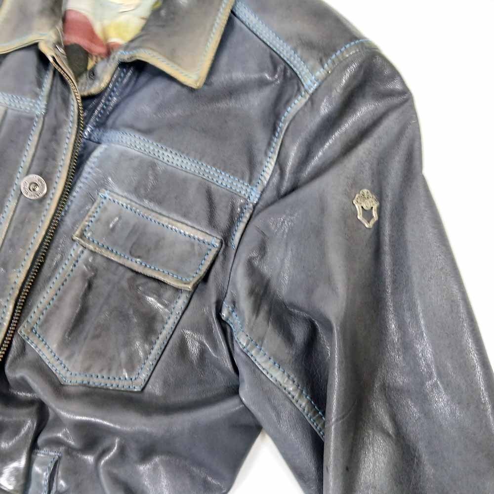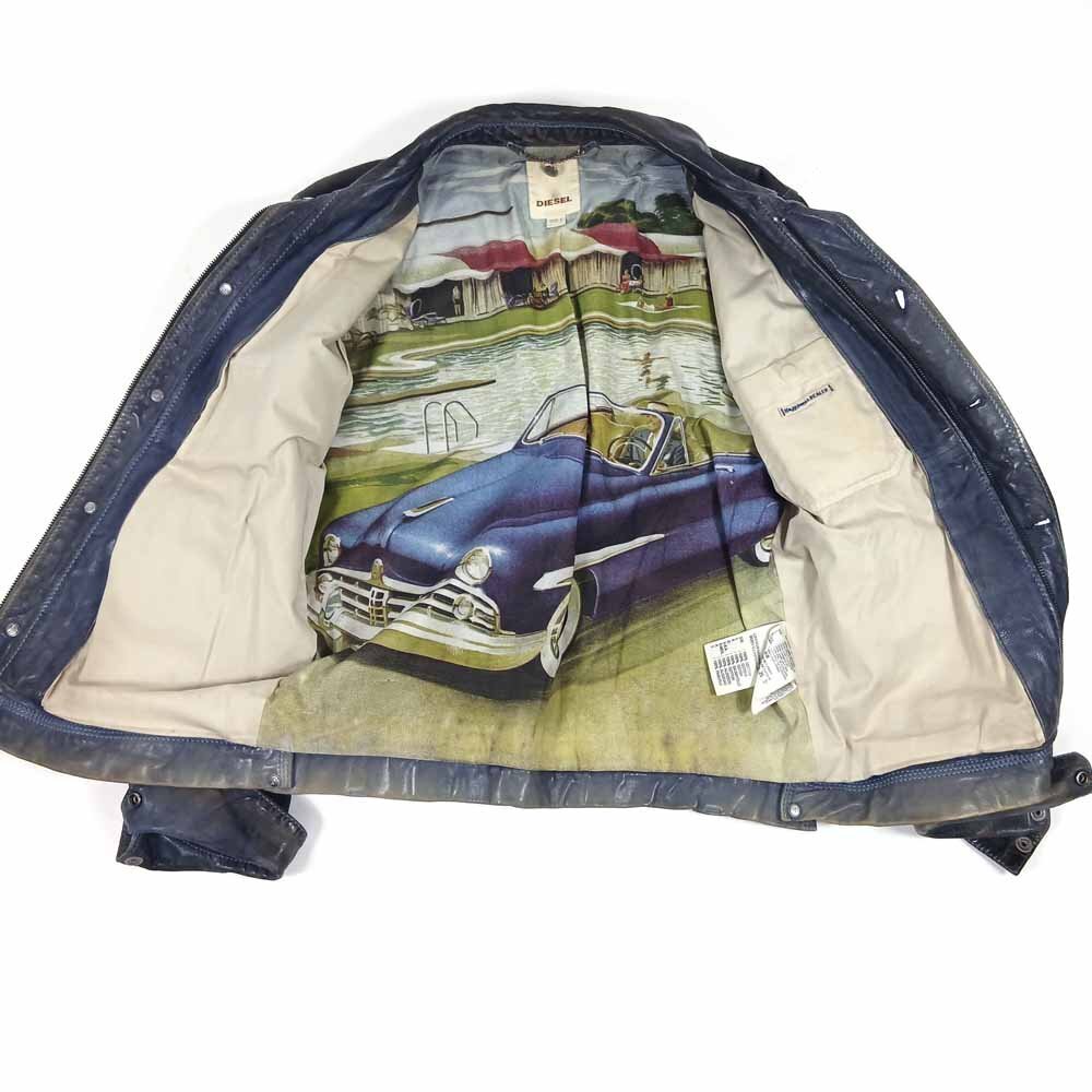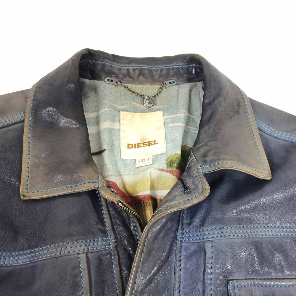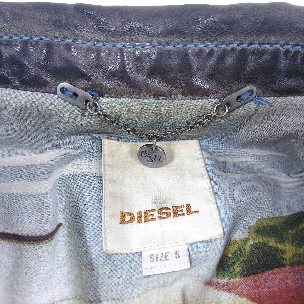 ◇♪希少♪DIESEL(ディーゼル)♪ラムレザージャケット♪サイズS♪グレー系♪裏地オープンカーデザイン