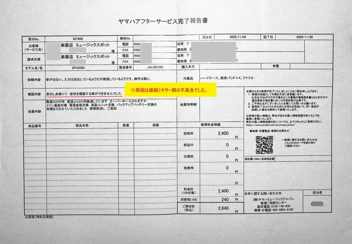 ・11月に修理に出しましたが、異常ありませんでした。