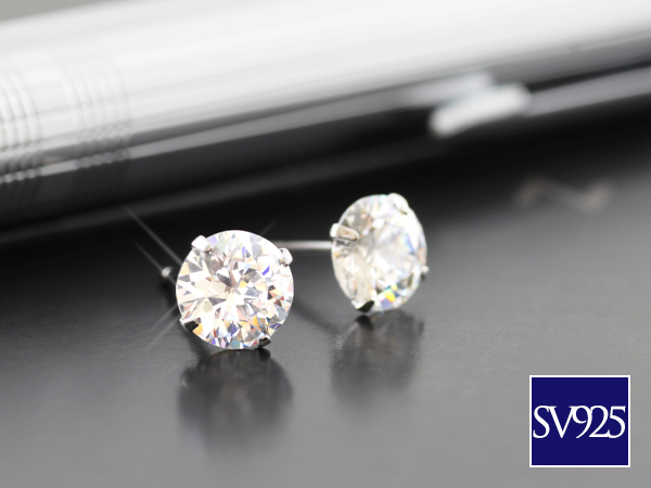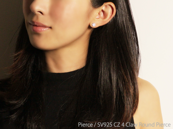 ピアス レディース 一粒 ジルコニア シルバー 銀 プラチナ仕上げ シンプル 両耳 スタッド 上品/ SV925 CZダイヤ 4爪ラウンドピアス 0.75ct