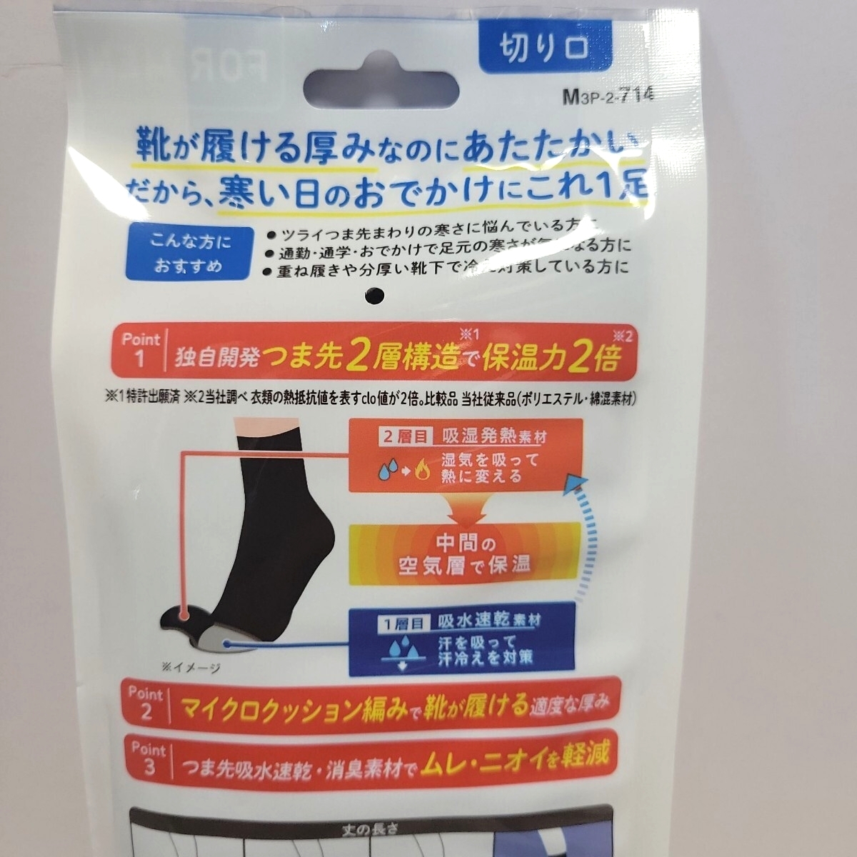 これからの季節にピッタリ、冷えるつま先に保温力 特許出願済