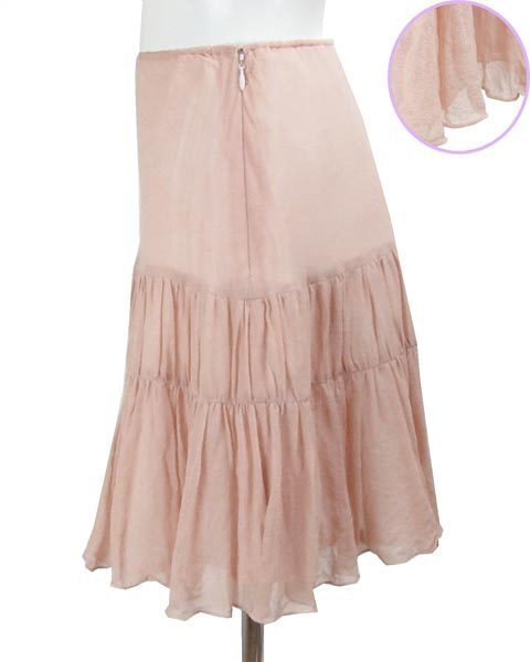 | やや落ち着きのあるピンクのフェミニンなスカート。ティアードデザインで、女性らしい甘目スタイルが楽しめます。季節を問わずお使い頂けます。優しいお色目なので、トップスのお色を選びません。 |