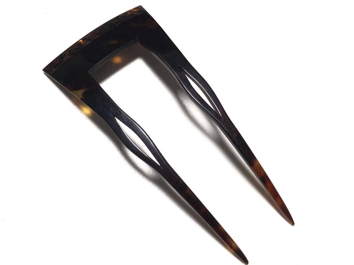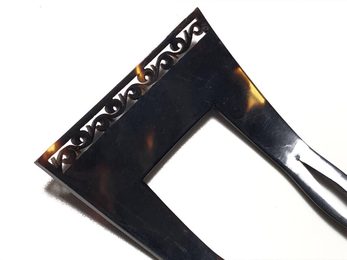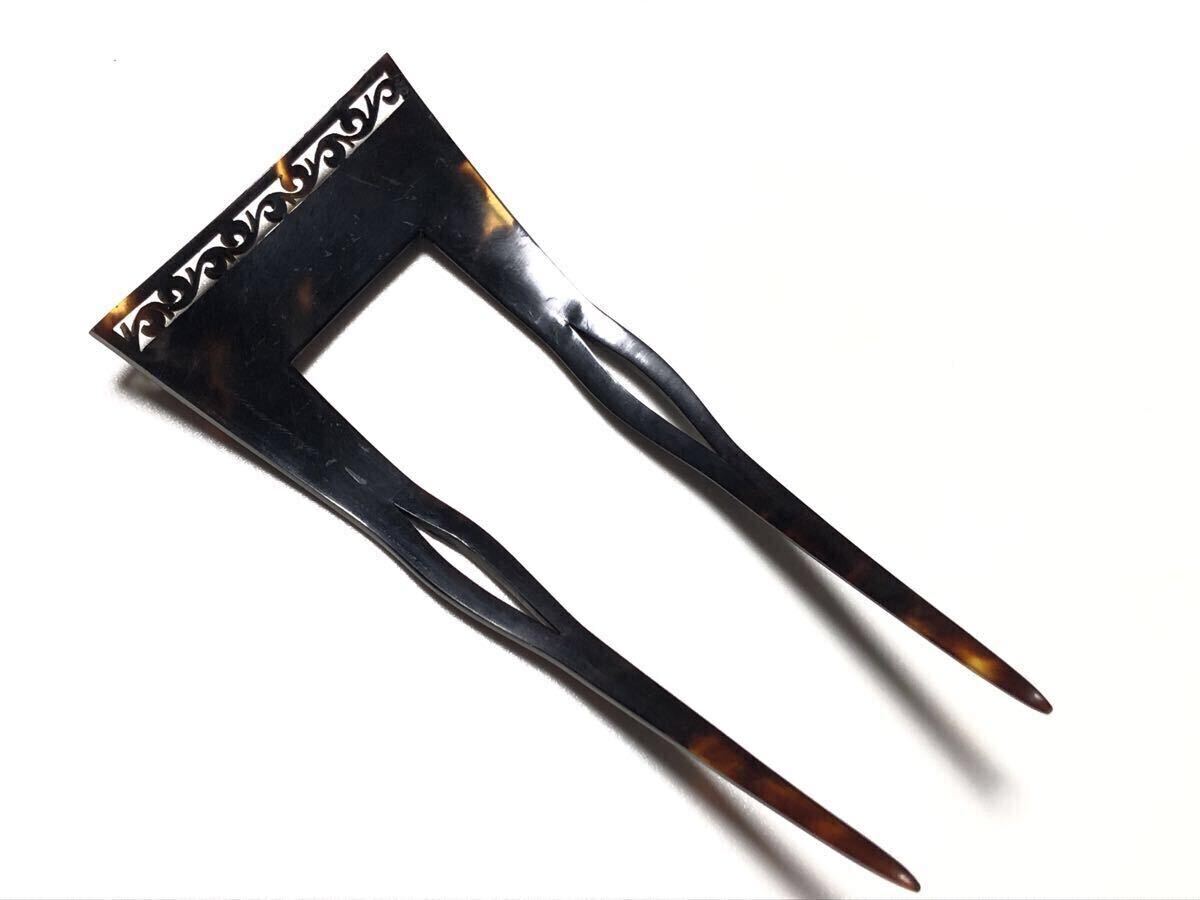 アンティークの本鼈甲を使用した、透かし唐草細工の簪です。唐草細工部分に若干の小さな虫食いがあります。