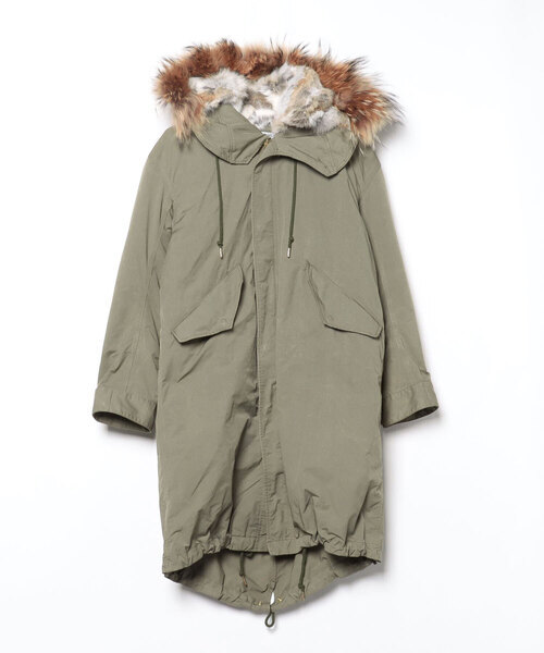 素材:【コート】本体: ポリエステル70% ナイロン30%、【ファー部分】フード: ラビット、フードまわり: チャイニーズラクーン(タヌキ)【ライナー】表地: ポリエステル100%、裏地: ポリエステル100%、中わた: ポリエステル100%