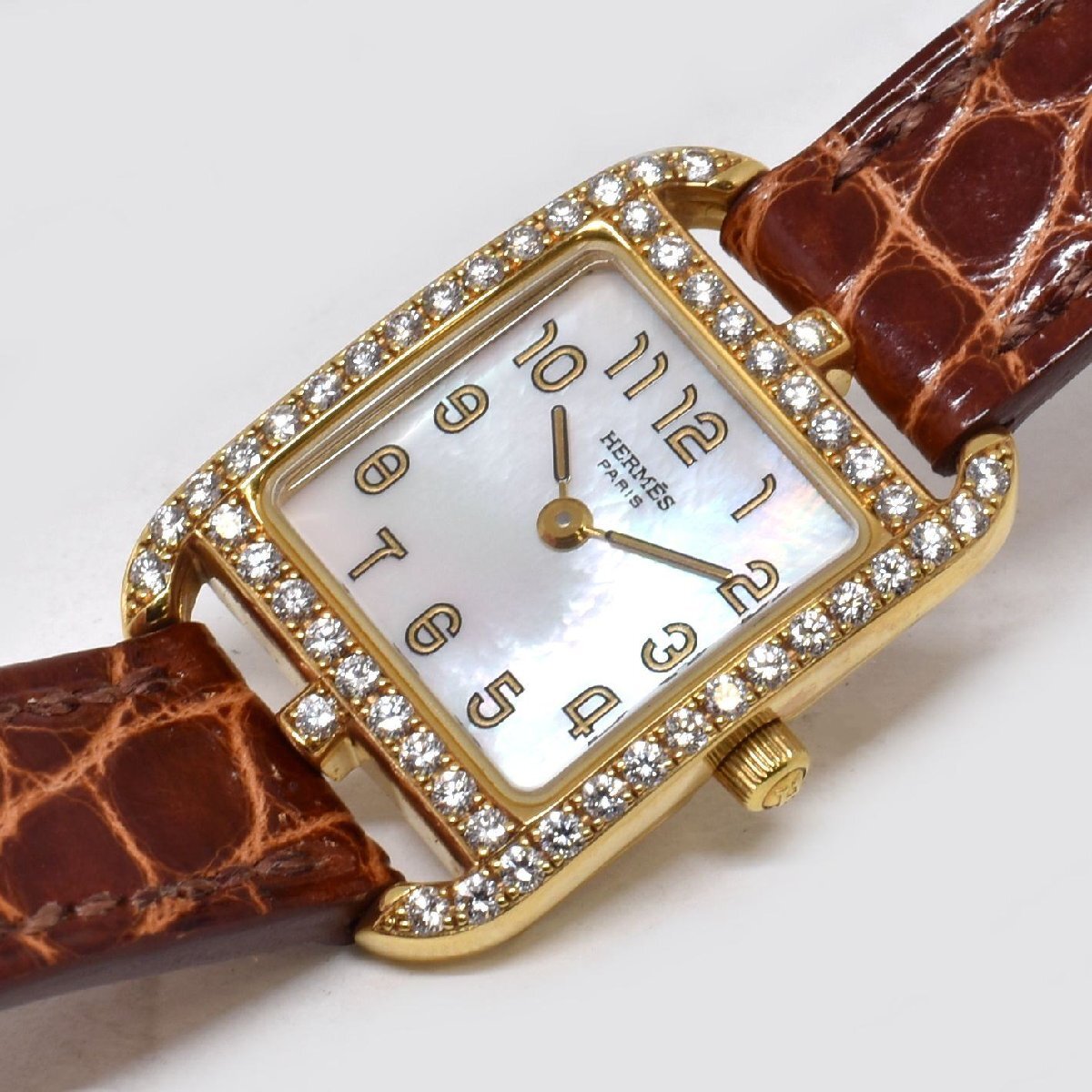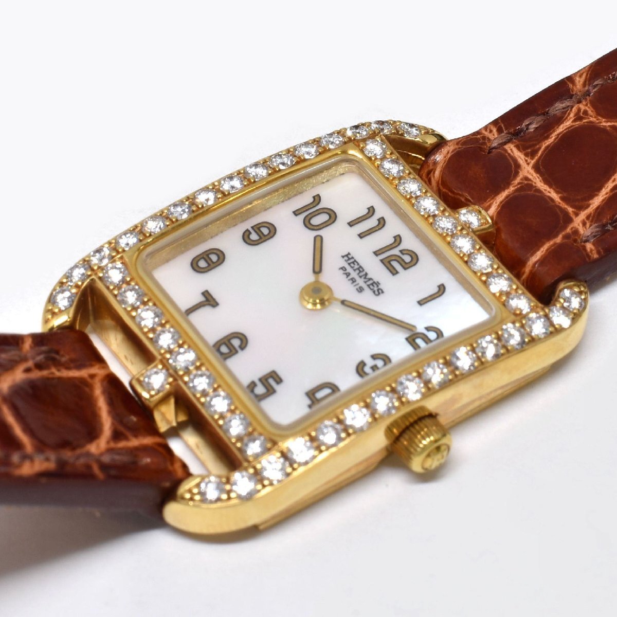 ★仙台★質屋★エルメス K18YG ケープコッドミニ CC1.187 ダイヤ ホワイトシェルダイアル クオーツ ★腕時計 HERMES 女性用 レディース