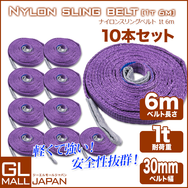 強度・耐荷・耐久性に!10本セット ナイロンスリングベルト ベルトスリング スリングベルト 荷上げ 耐荷 1t 1000kg 6m