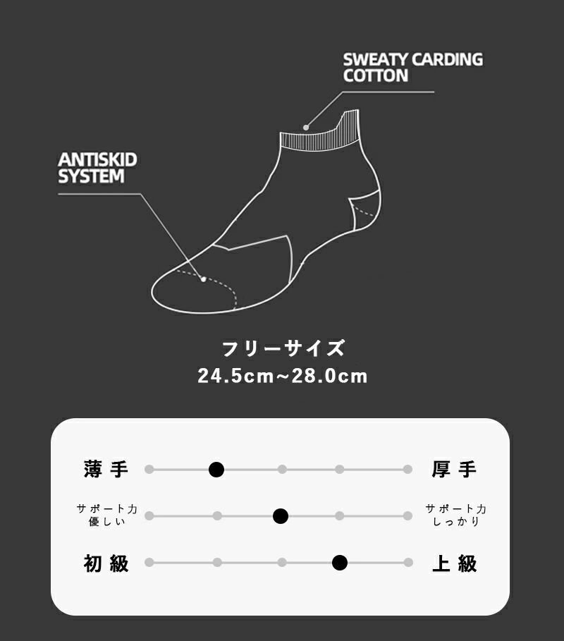 スポーツソックス スニーカーソックス メンズ靴下 くるぶし 滑り止め ゴルフ ランニング トレーニング 登山 キャンプ アウトドア