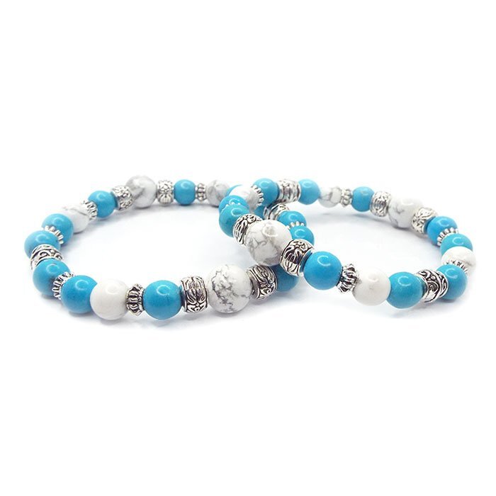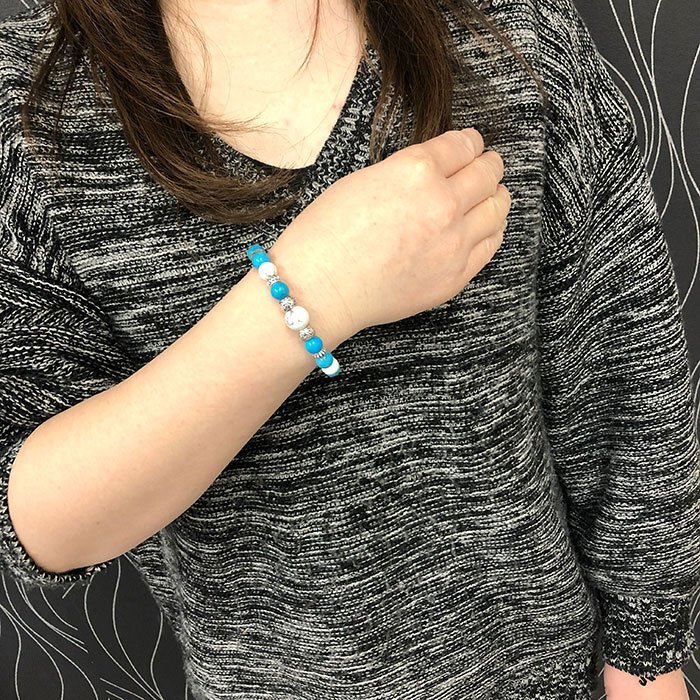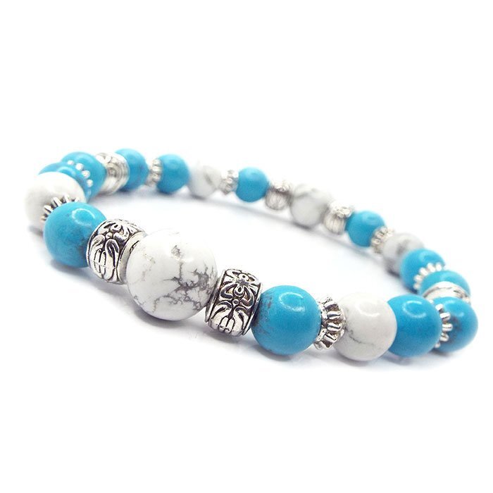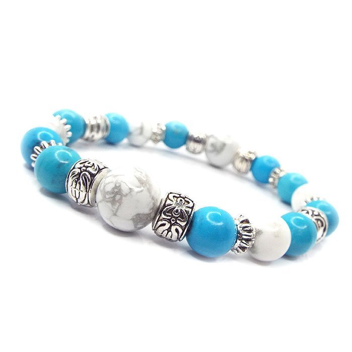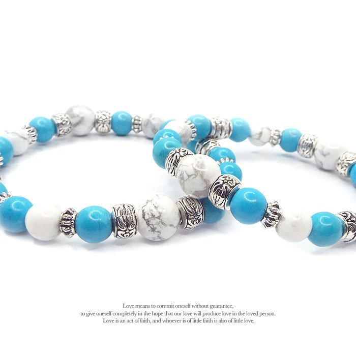 | 【STONE KITCHEN 天然石 パワーストーン】 シンプルなデザインだからペアブレスレットとしておススメ☆ 2人で達成したい目標がある、2人の夢がある、 そんな2人にオススメのパワーストーンペアブレスレット♪ ペアブレスレットは、記念日、誕生日、クリスマス、 バレンタインデーなどのプレゼントとしても最適♪ ターコイズは心身、肉体と精神、 情の調和を図りながら1つに統合させる力があるとされています。 寂しさや悲しさの感情を和らげてくれる効果もあるとされ、 意識を高い次元へと引き上げてくれると伝えられています。 サイズ:ホワイトターコイズ 10mm・8mm ターコイズ 練り 8mm レディース 内周:約16cm メンズ 内周:約18cm ペアセット 注意事項 ※金属部分は汗や汚れ等で変色する場合がございます。気になる場合は 金属磨きや布等で軽くふき取る事をおすすめします。 ※石の種類によっては、艶を引き出すことを目的として、ワックスや着色加工がされているものもあります。 ※表示のサイズは必ずしも最大値・最小値のサイズのものが入っているわけではございません。 ※天然石のため同じものでも色味・模様などが異なります。 ※照明の具合で実際とは色合いが異なる場合がございます。 また、天然素材特有のクラック・内包物を有する場合がございます。予めご了承下さい。 | |