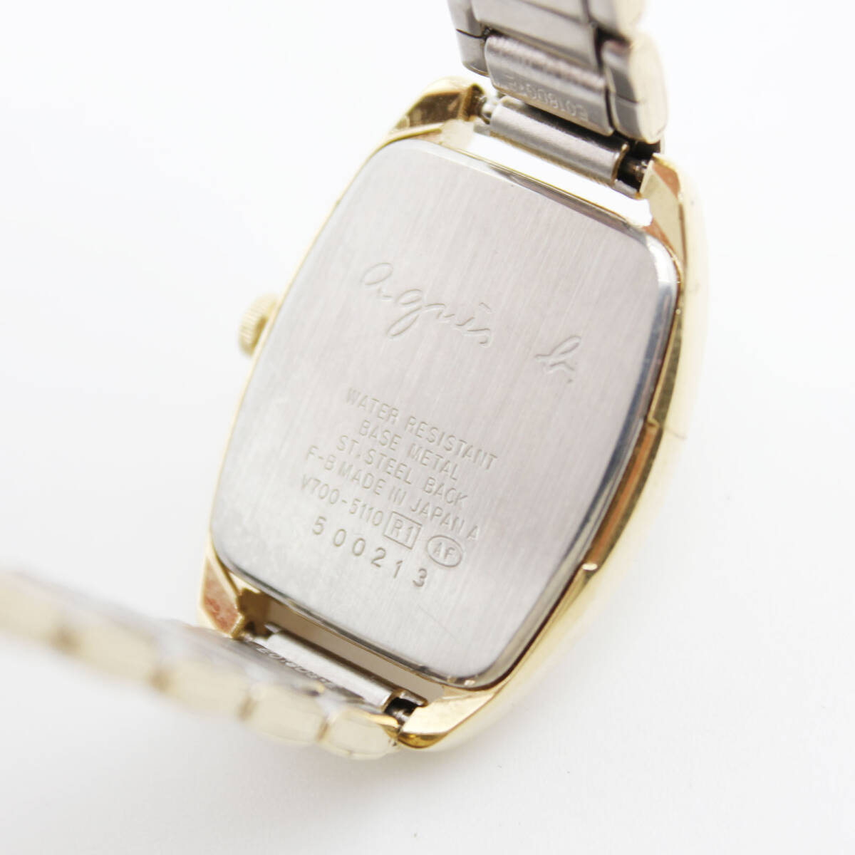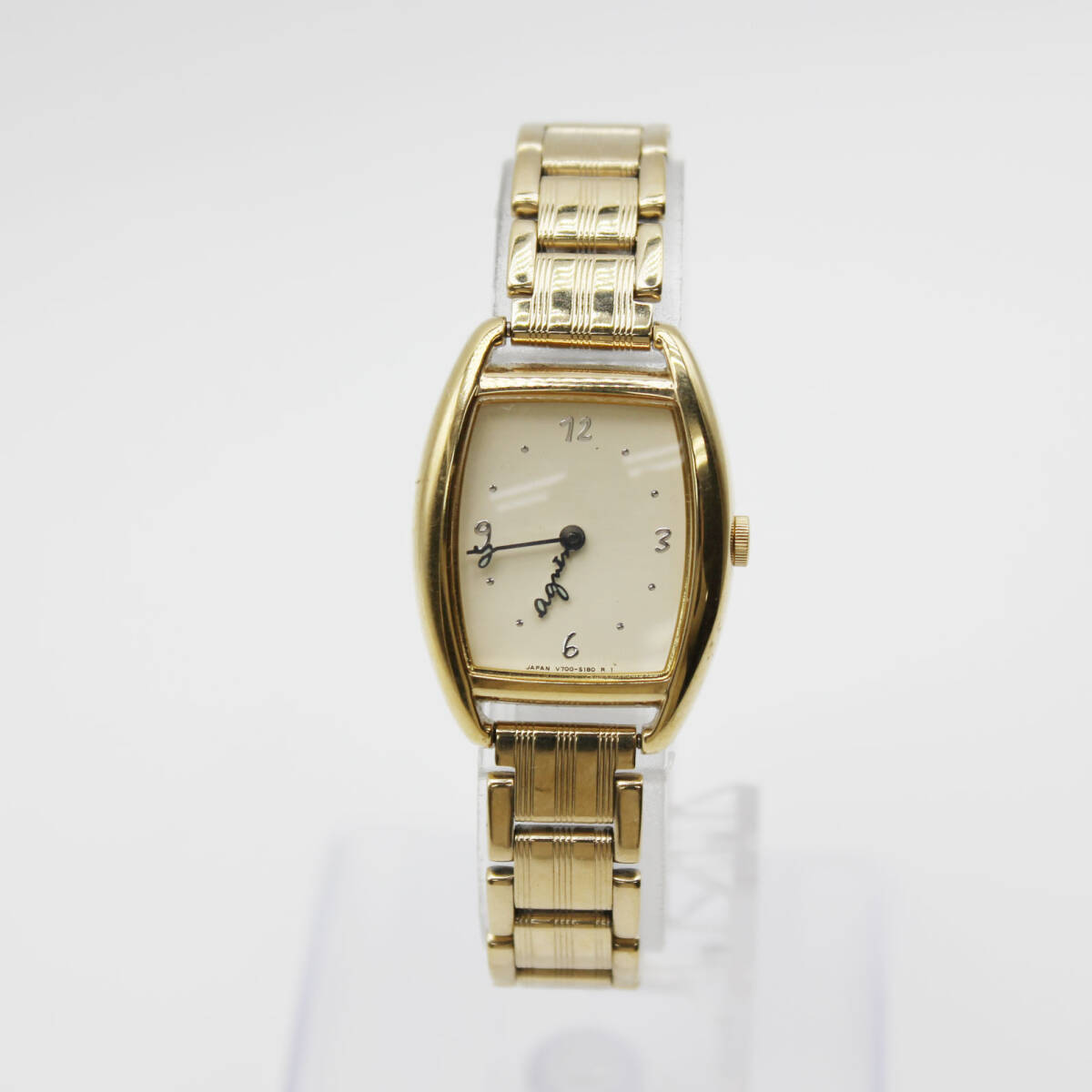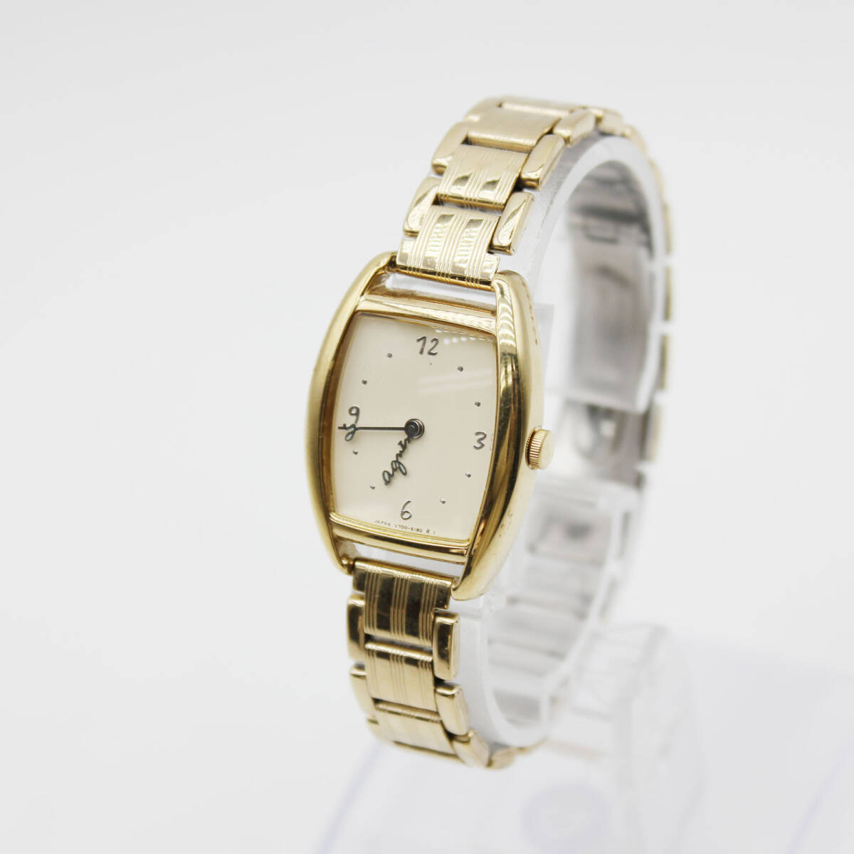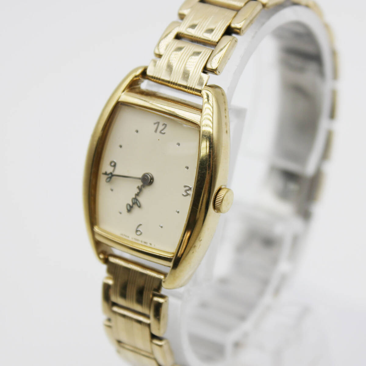W251128-22 agnes b. アニエスベー V700-5110 レディース腕時計 クォーツ ジャンク 文字盤アイボリー トノー型 ゴールド