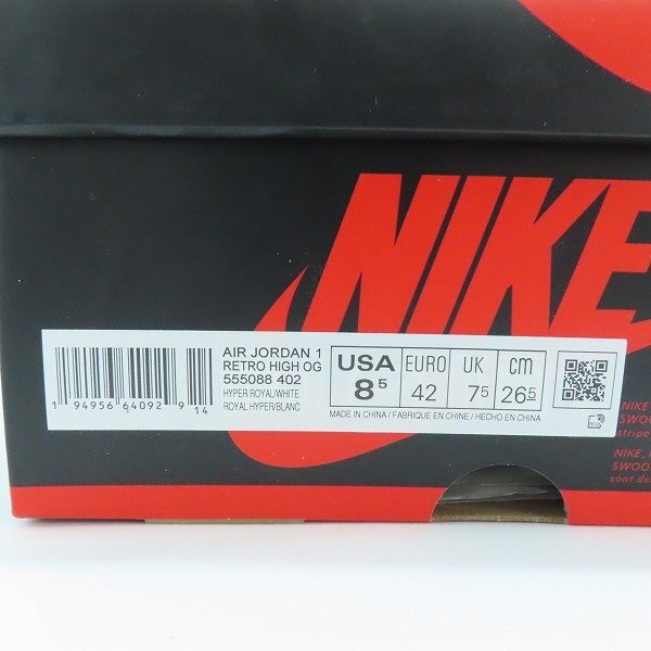 | NIKE/ナイキ AIR JORDAN 1 RETRO HIGH OG HYPER ROYAL エアジョーダン1 ハイパーロイヤル 555088-402/26.5 /080 | |||||||||||||||||||||||||