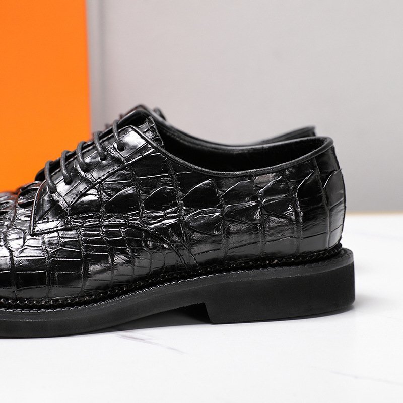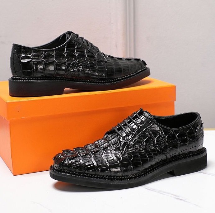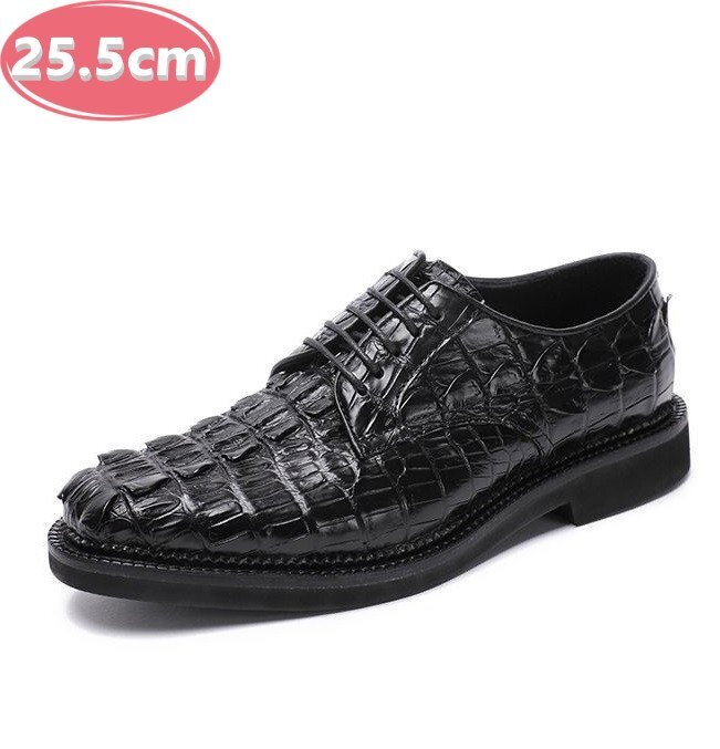 クロコダイルレザー ビジネスシューズ 最高級 ワニ革 クロコダイル 靴 メンズシューズ 革靴 ブラック 25.5cm 【n788】