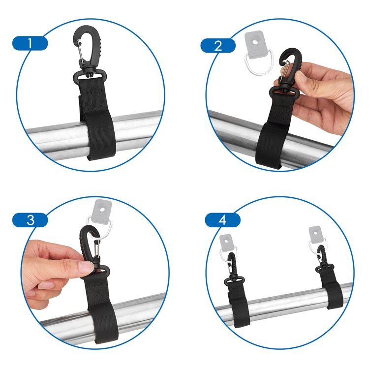 ◆パドルホルダー 2個セット ベビーカー掛けフック スイベルフック付 高耐久 軽量ナイロンベルト 脱着簡単 面ファスナー式 回転フック パドルキーパー 小物ホルダー カヤック・サップのパドル保持に TNKBH02S