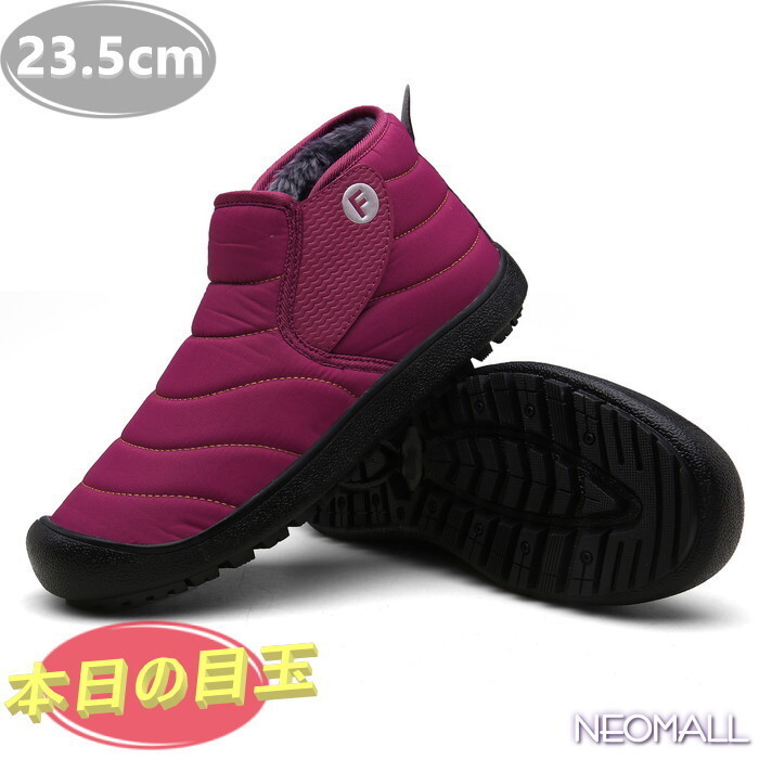 ユニセックス スノーシューズ 【869】 23.5cm ローズ ムートンブーツ スニーカー ウィンターブーツ 裏起毛 防水 防寒 防滑 冬用靴 綿靴