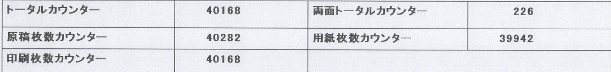 | 状態 | 【中古品】 ◆使用によるキズ、汚れ、シール跡、黄ばみ等あります。 ◆カウンター:40168枚 ◆通電、起動確認済。 ◆初期化済。 ◆有線LANでのPC接続確認済。 ◆コピー/プリンタ/スキャナ/FAX動作確認済。 ◆両面印刷動作確認済。 ◆各トレー給紙動作確認済。 ◆動作確認は以上となります。 |