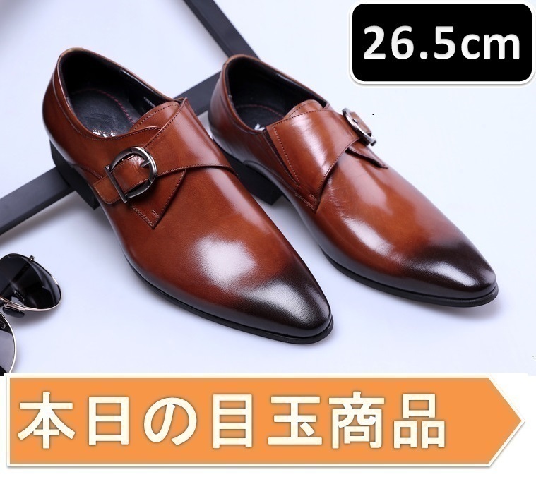 本日の目玉 ☆ メンズ ビジネス レザー シューズ ブラウン サイズ 26.5cm 革靴 靴 カジュアル 屈曲性 通勤 軽量 【206】