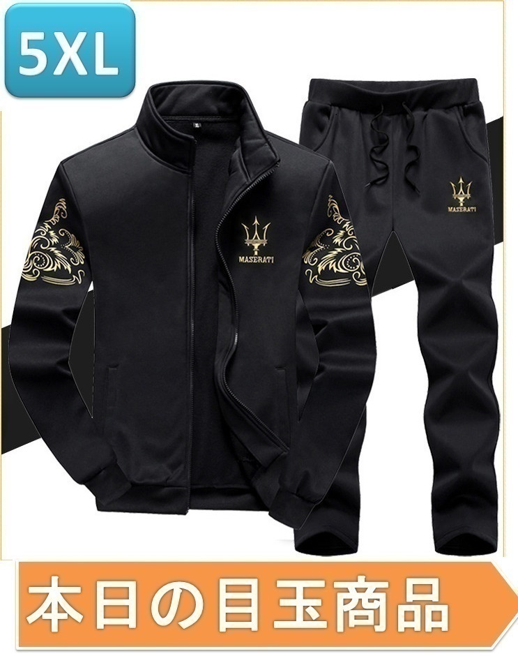 【今日の目玉】メンズセットアップ 上下セット ☆196 ブラック 5XLサイズ ジャージ スウェット お兄系 部屋着 おしゃれ