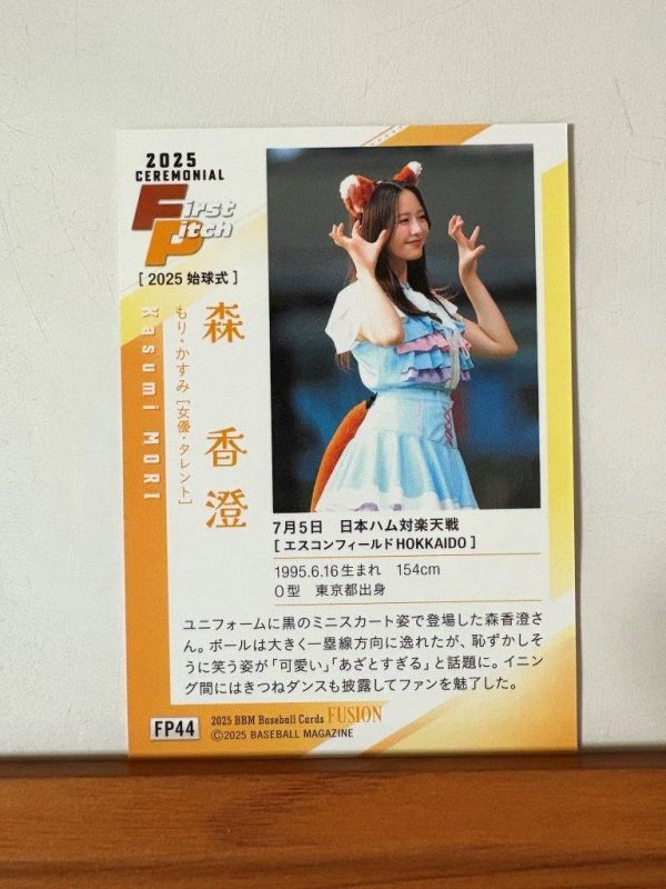 【2025 BBM FUSION】FP44森香澄 始球式カード