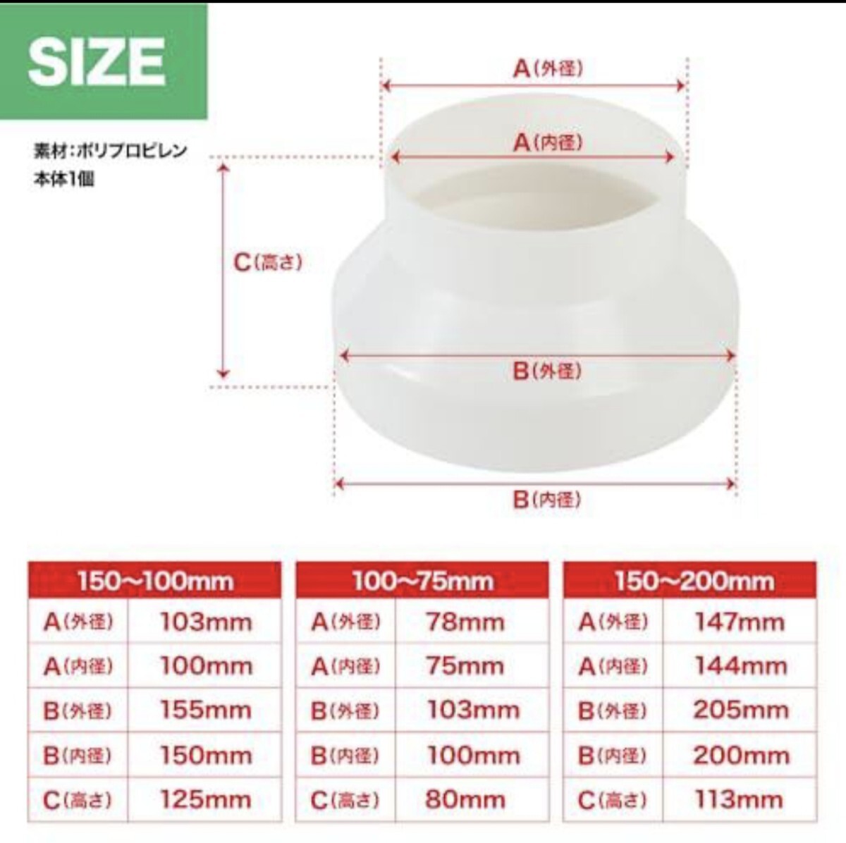 ・商品詳細適合パイプ:150mm←→100mm、 素材:ポリプロピレン