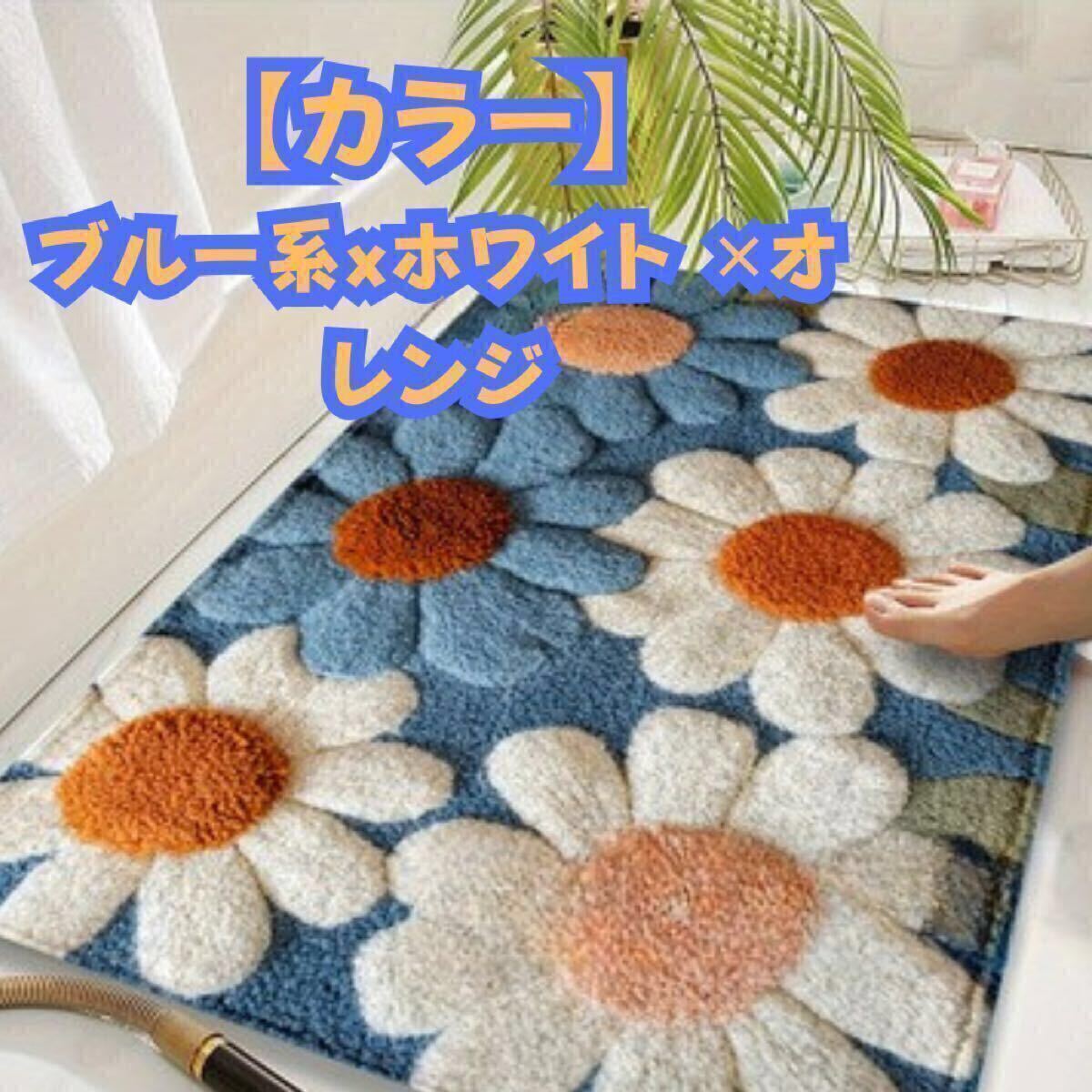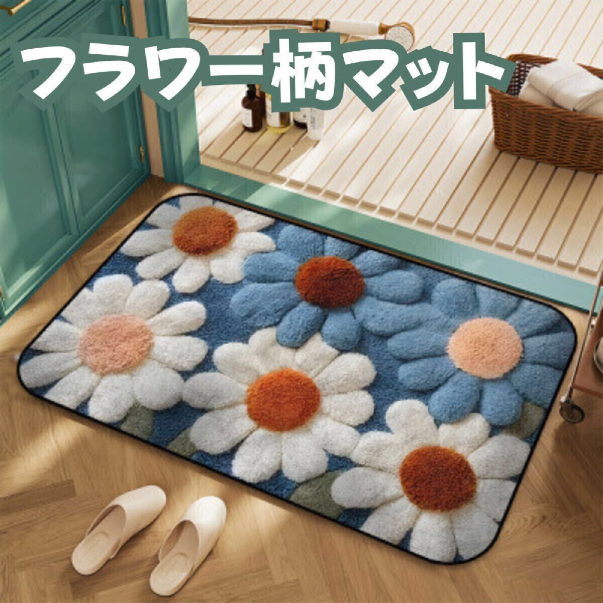 フラワー柄玄関マット 滑り止め加工 45×75cm グリーン 1531000351903