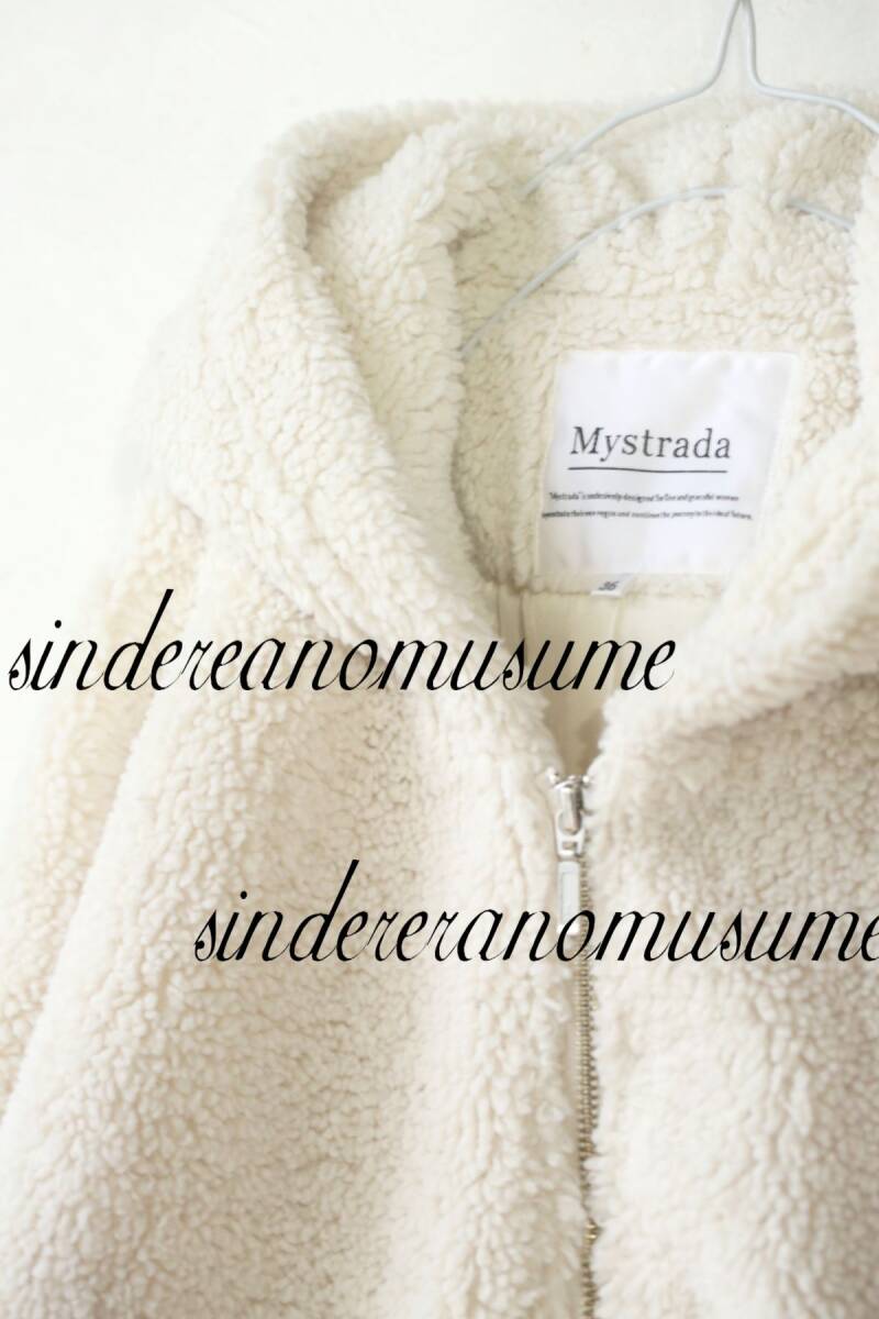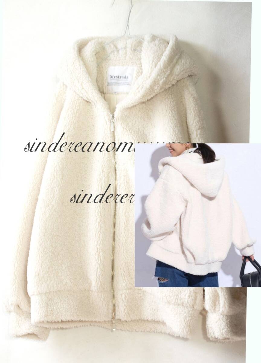 ★マイストラーダ 白ボアパーカージャケットブルゾン アイボリーオフホワイト フード ライトベージュ★