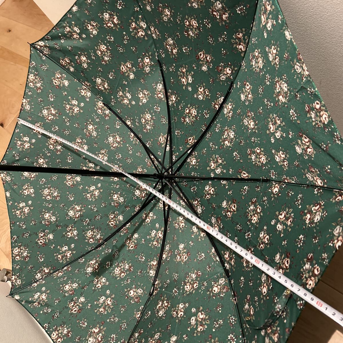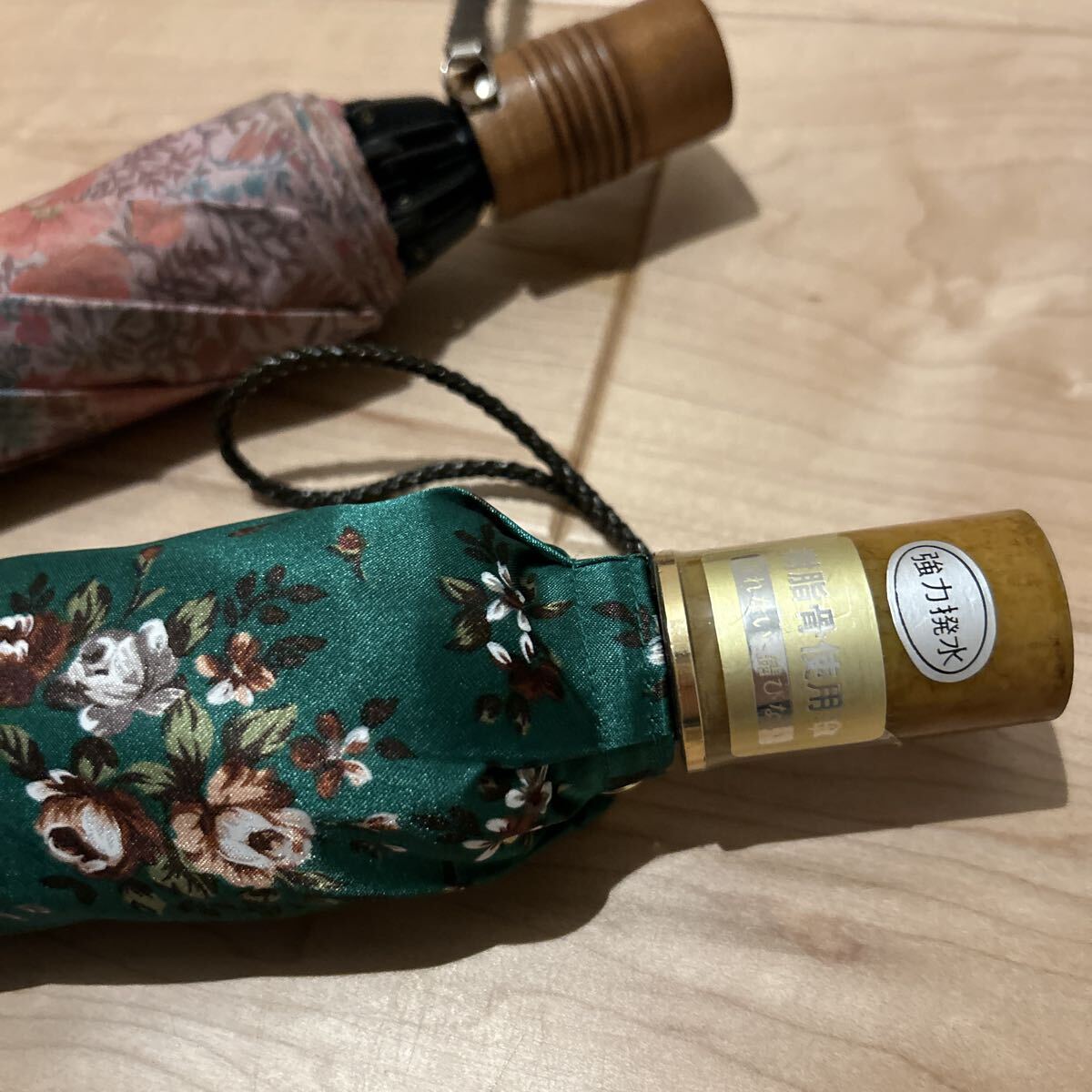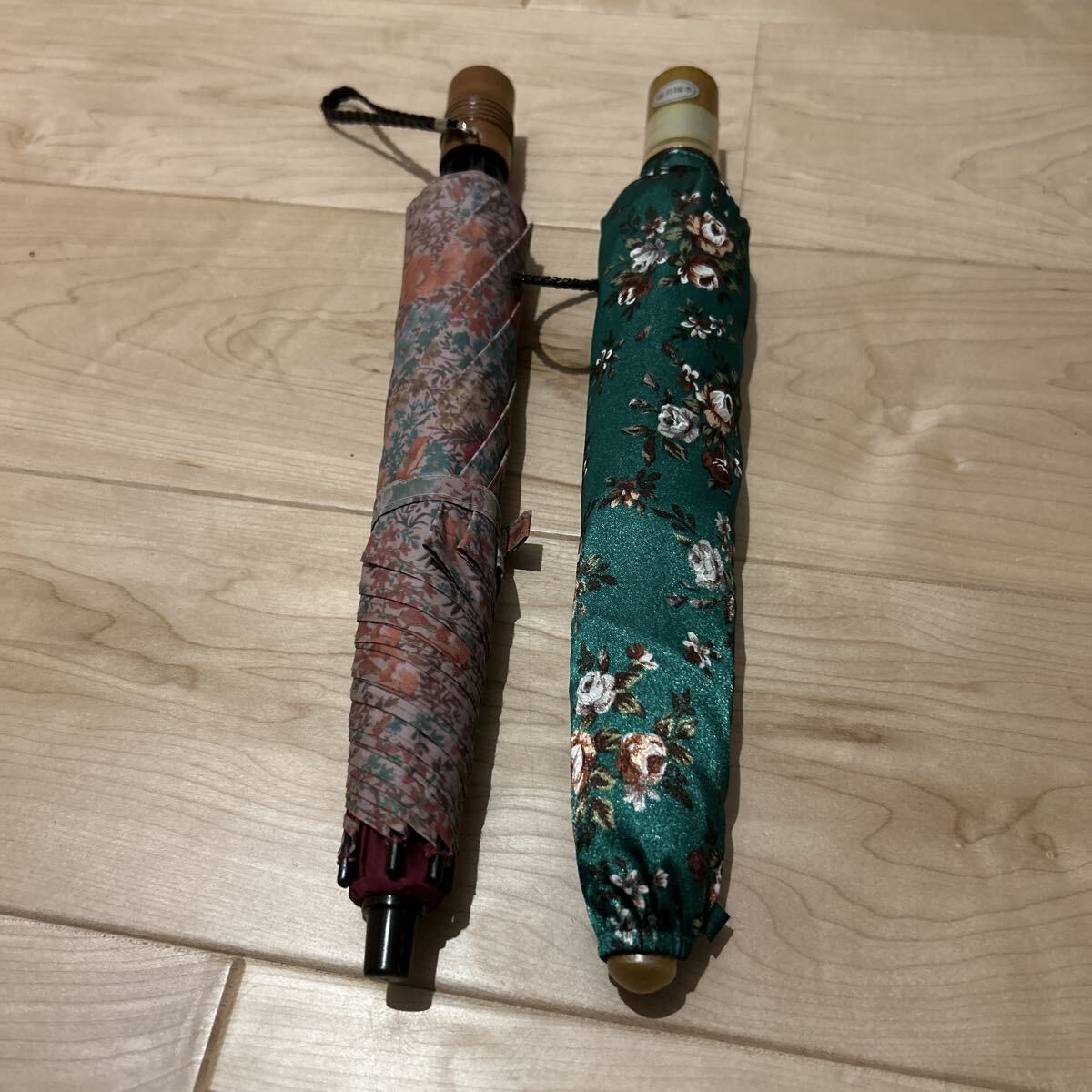 2本セット グリーンピンク花柄 折りたたみ傘 日傘 雨傘 雨具 傘 折り畳み傘 女性用 晴雨兼用 撮影の為広げてます