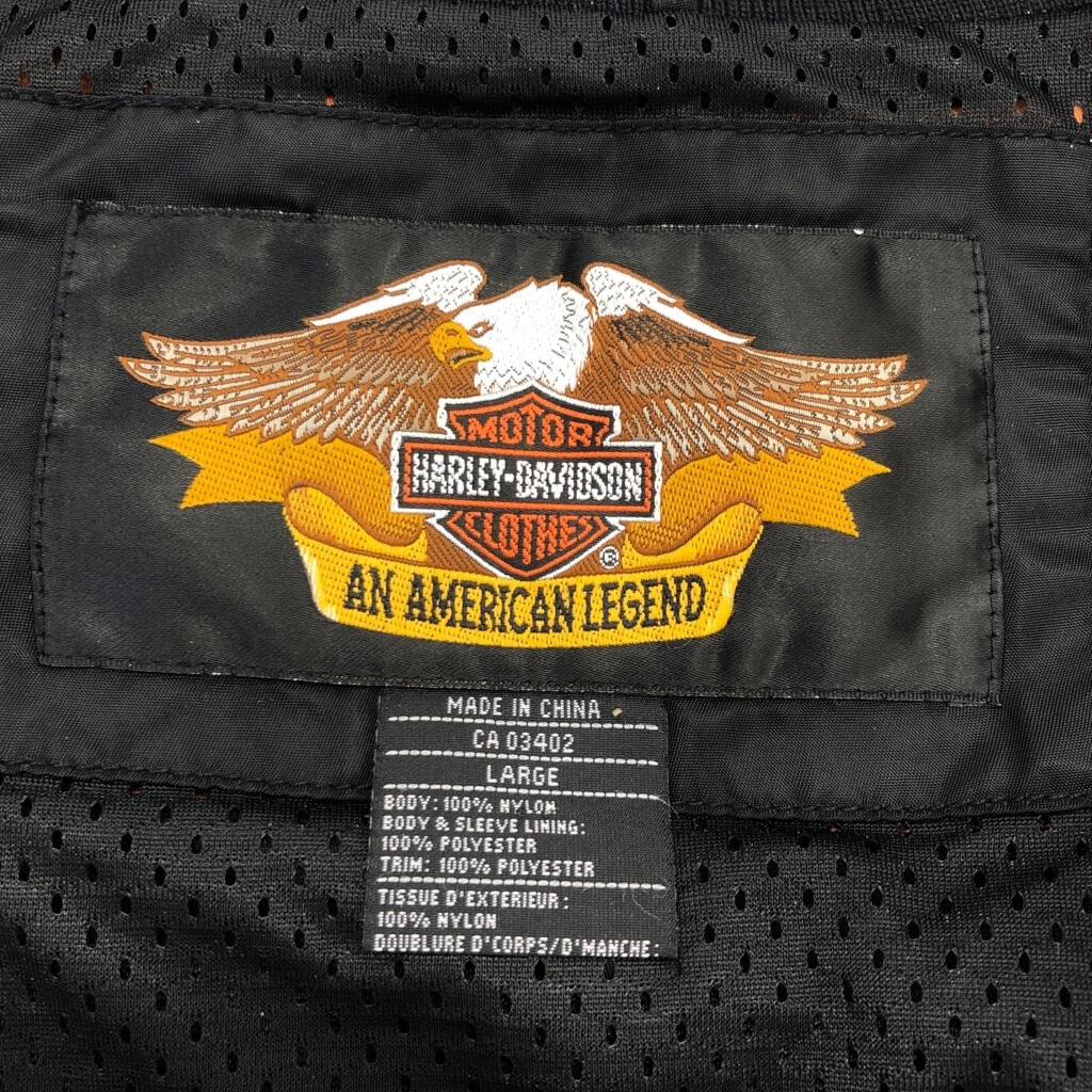 | 【商品管理番号】 U9895 【ブランド】 HARLEY DAVIDSON/ハーレーダビッドソン 【サイズ】 XL 【実寸サイズ】 肩幅:約52cm 着丈:約65cm 身幅:約68cm 袖丈:約63cm 【主な素材】 表地 : ナイロン 裏地 : 13897 【色】 ブラック 【仕様】 裏地メッシュ モーターサイクル 【状態】 特記事項:ジップトップ欠損 | |||