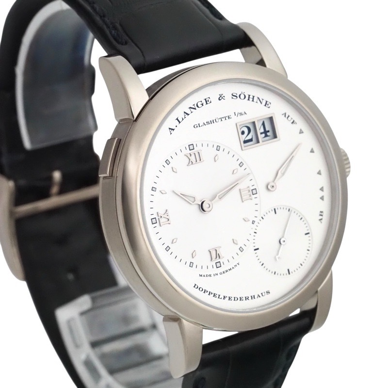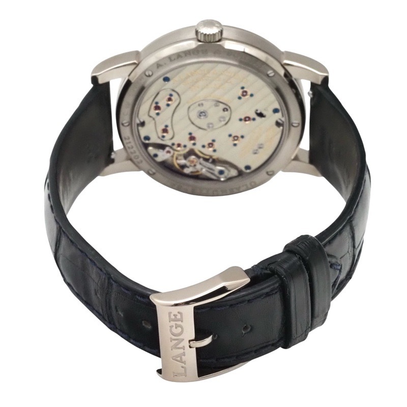 | 状態ランク | SA 2025年9月にメーカーでコンプリートサービス済みでストラップは使用感ありますが、その他非常に良い状態です。メーカー保証は2027年9月までございます。ホワイトゴールドケースにシルバー文字盤を配し、オフセンターダイヤル、ビッグデイト表示、パワーリザーブ表示を備えた独創的なレイアウトが魅力です。ムーブメントは手巻きキャリバーL901.0を搭載し、72時間パワーリザーブを誇ります。サファイアケースバックからは精緻な3/4プレートやハンドエングレービングのテンプ受けを鑑賞可能。ドイツ高級時計の真髄を体現する一本です。 |