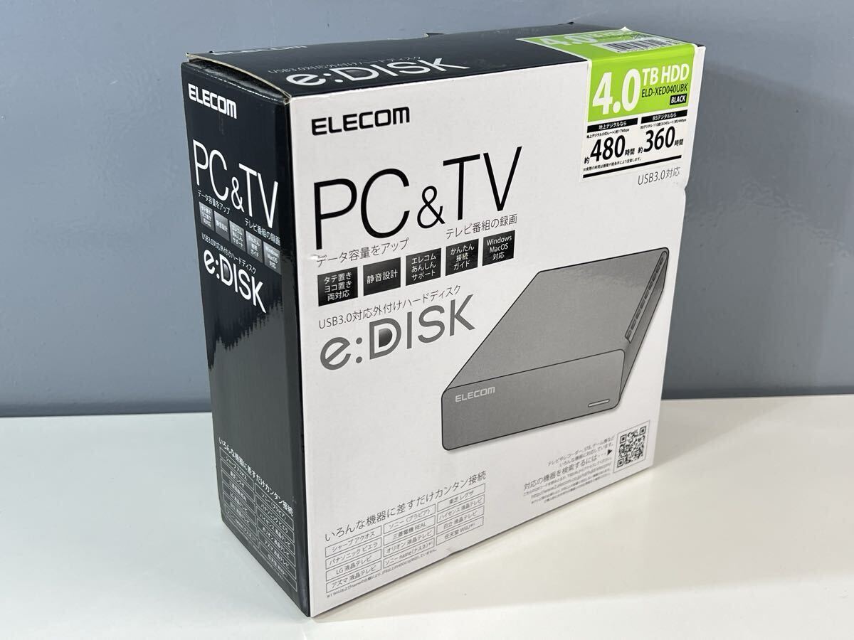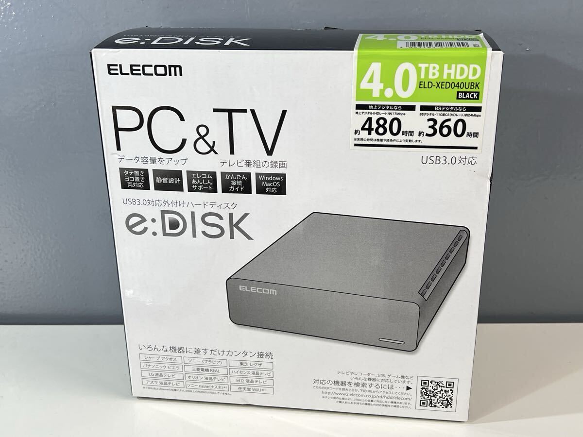 ◆美品 ELECOM エレコム ELD-XED040UBK e:DISK 4.0TB USB3.0対応 外付けHDD ハードディスク TV テレビ録画 PC対応 動作未確認 現状品 管理KA778