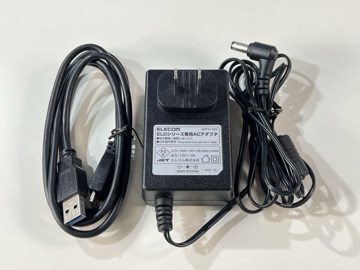 外付けHDD本体、USB3.0ケーブル(約100cmコネクタ含む)、クイックガイド(保証書付)、TV向けかんたん接続ガイド、ACアダプター(ELECOM ELDシリーズ専用 ADP93-026)