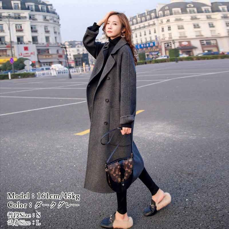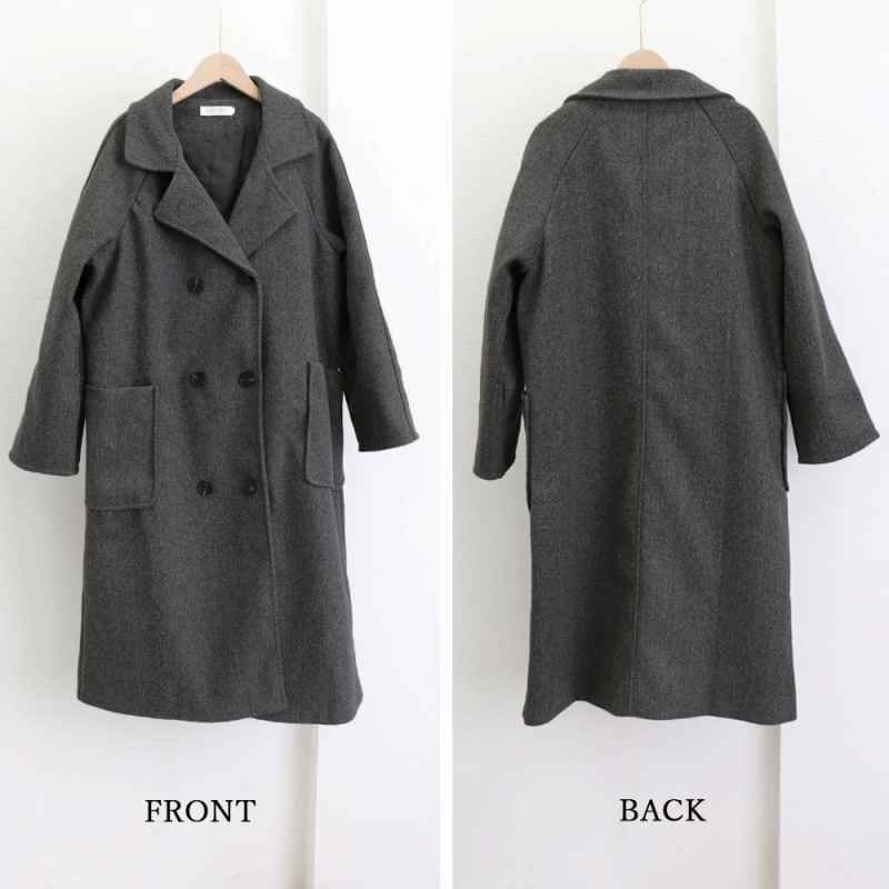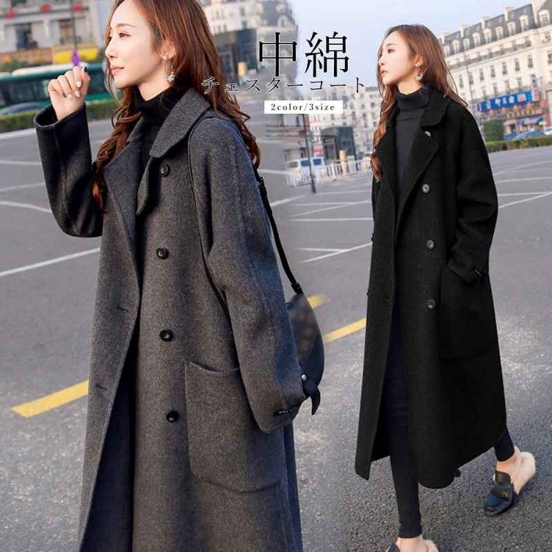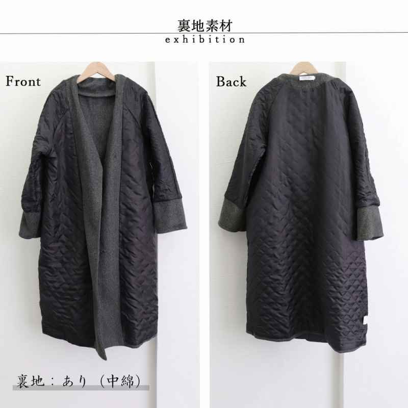 中綿入りのウールタッチの生地感はハリがあって、保温力が高く女性らしさを惹き立て、大きめのポケットは小物などの収納に便利な上着やせにも。