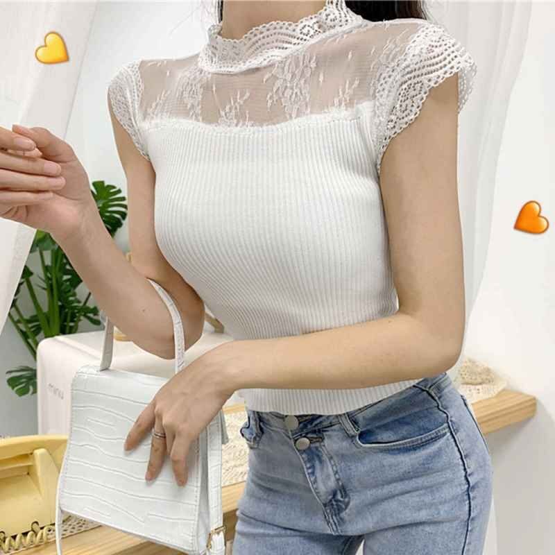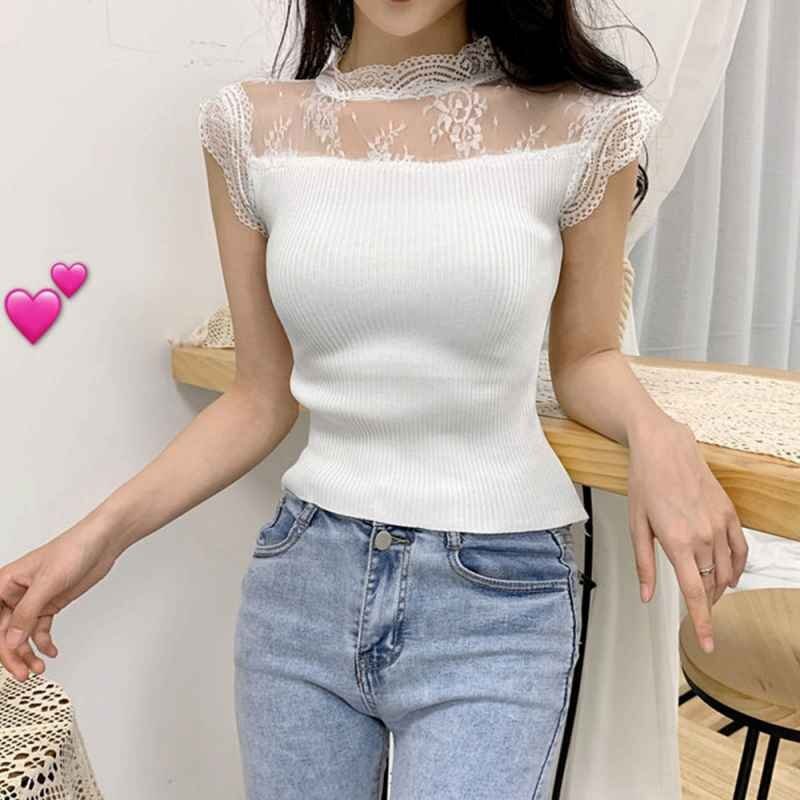 レース×ニットの組み合わせがおしゃれなサマーニット