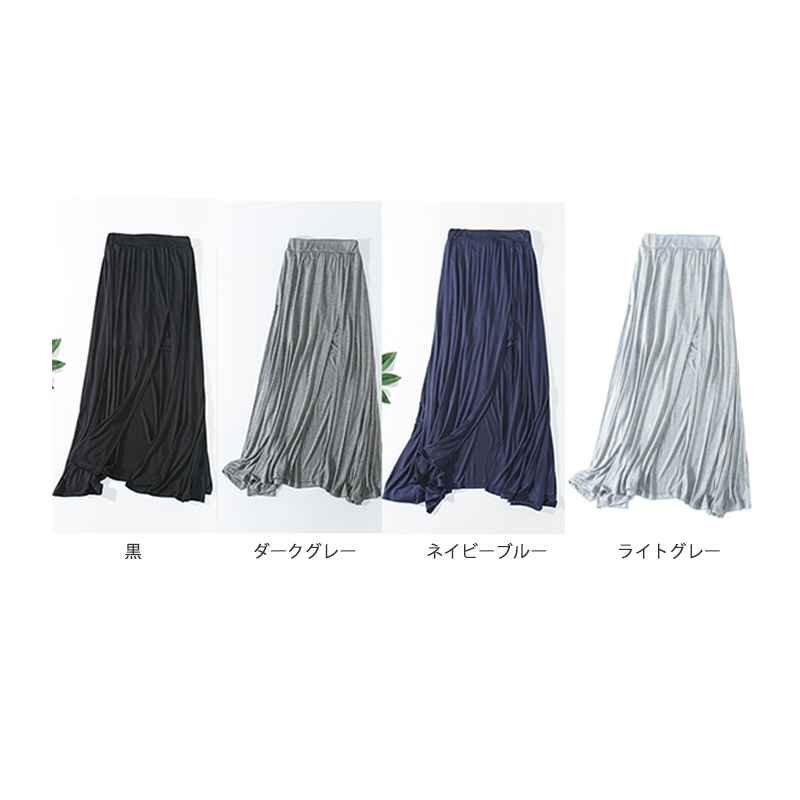 ・見せパンつきで階段や風の強い日も安心。伸縮性があり、まらウエストゴム仕様でストレスフリー。