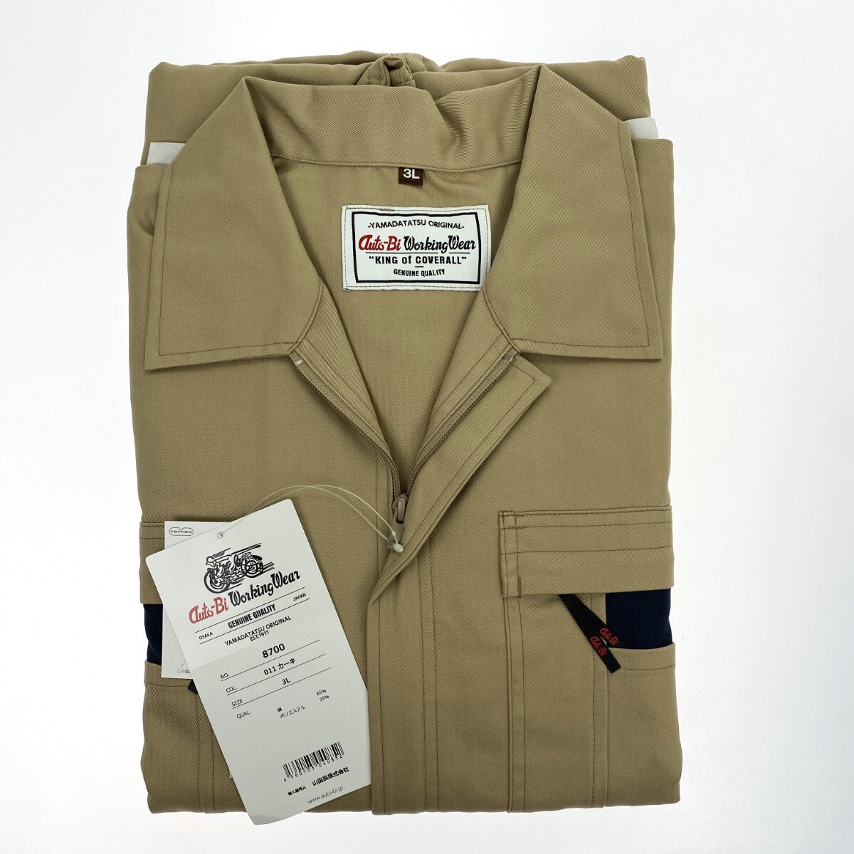 ## 山田辰 Auto-Bi つなぎ服 8700 カーキ 3Lサイズ 長袖 ストライプ調 未使用品 未使用に近い
