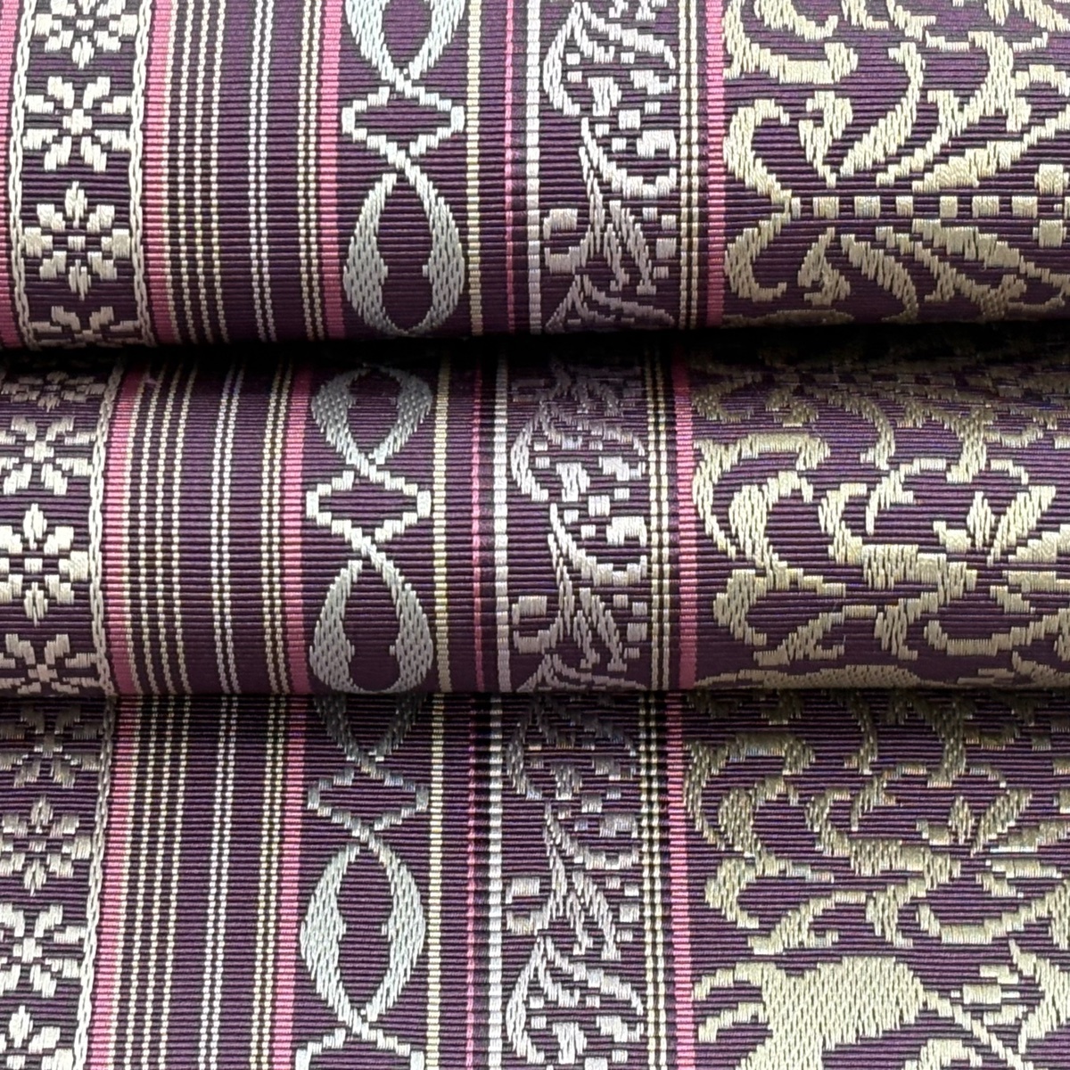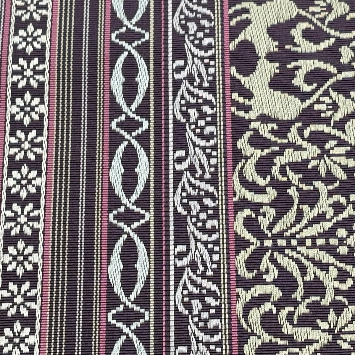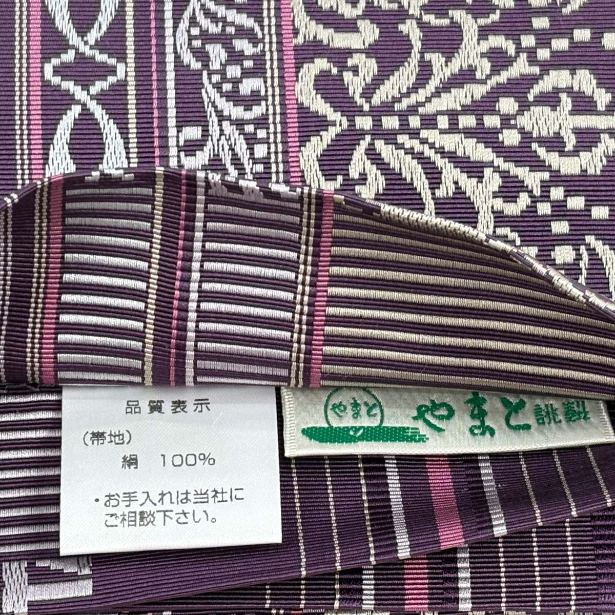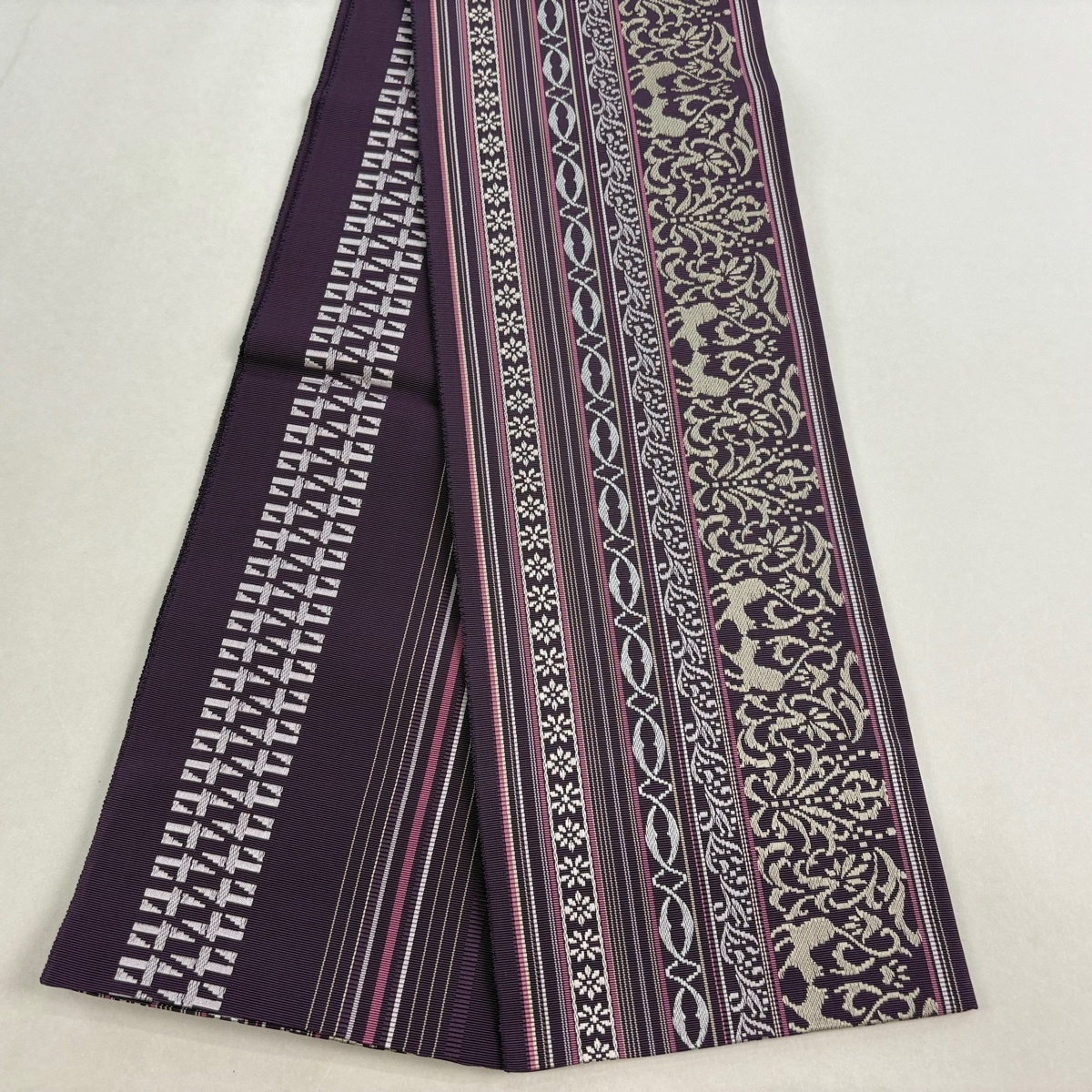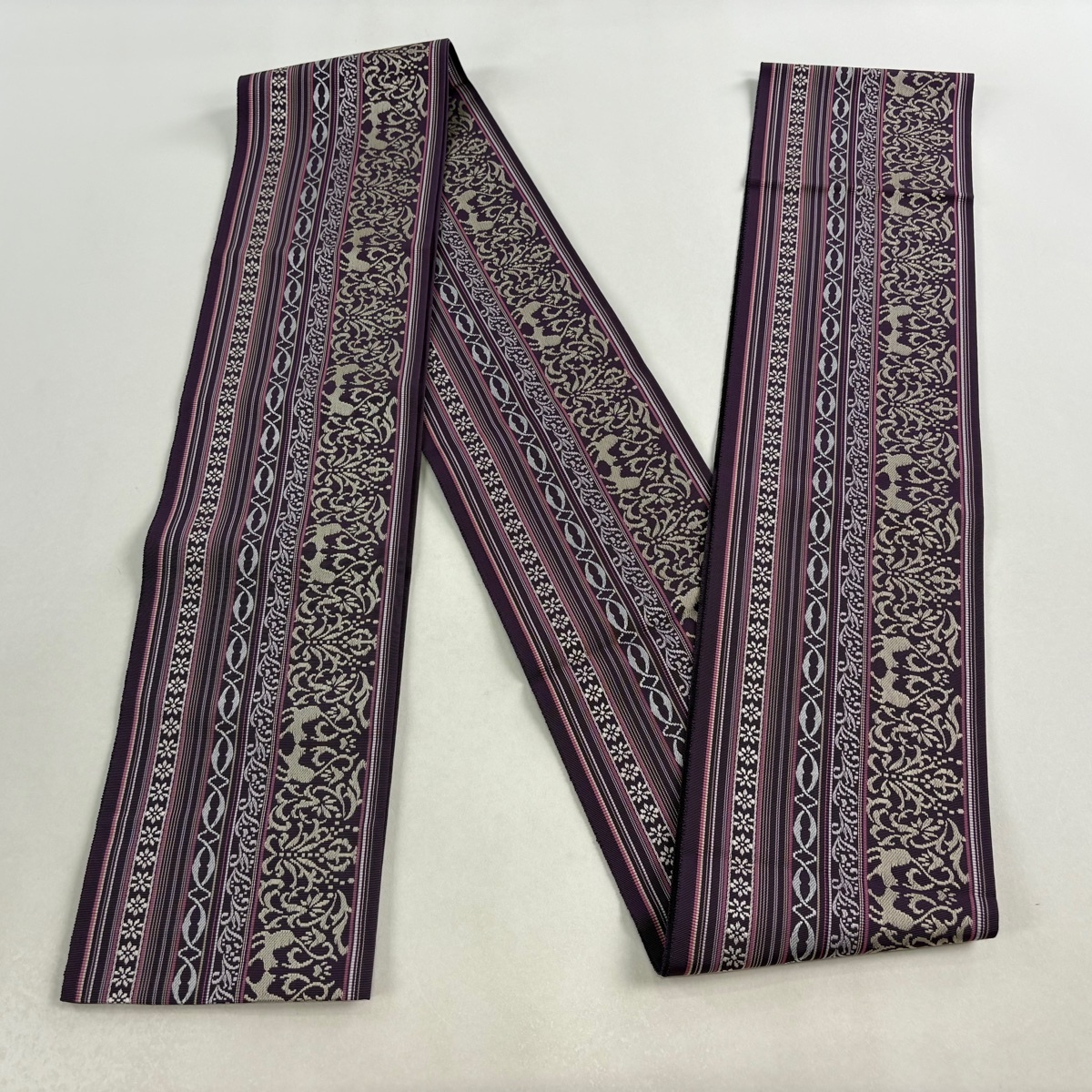 | 半幅帯 美品 名品 やまと 動物 草花 紫 正絹 【中古】 |
