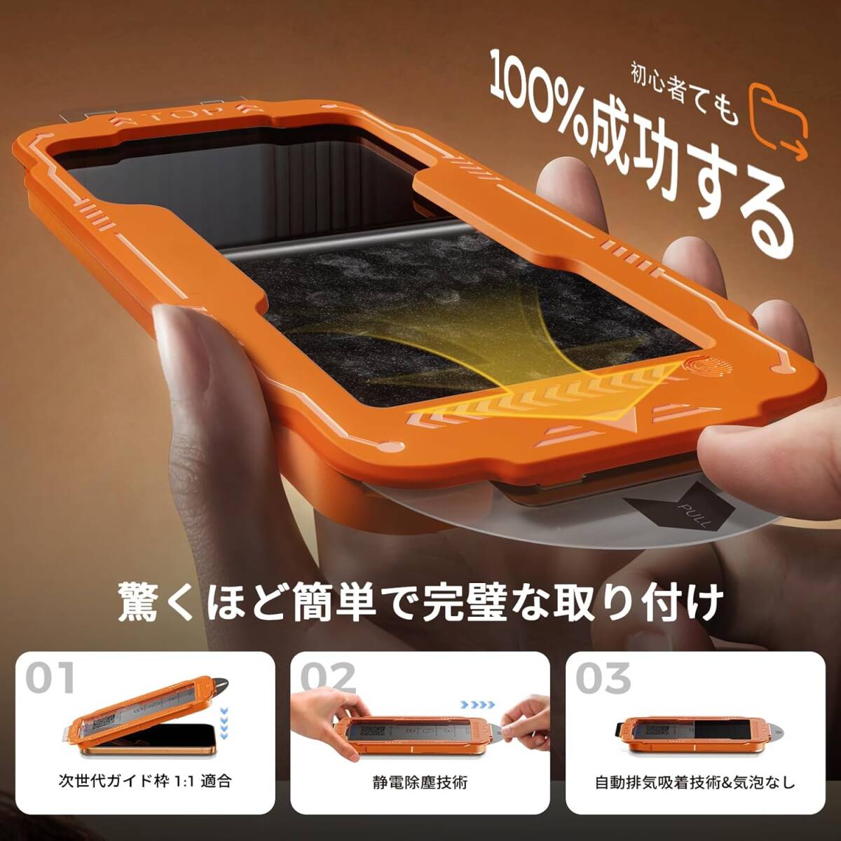 【指紋防止&究極のスムーズさ】スマホ フィルム 17 proは、日本AFナノコーティングと独自開発のZ-Silkメッキ技術を採用。汗・油汚れ・指紋を効果的に防止し、画面上での指の動きをさらに滑らかにします。0.33ミリの超薄型デザインで装着感はほぼゼロ。スマホの操作感を新たな高みへ。特にゲーマーに最適-毎回のスワイプが正確に指に追従し、スキル発動を一歩早くサポート!さらに携帯フィルム 17 proの表面の16,000倍高密度分子層が汗と油を強力に防止し、画面を常に新品同様の清潔さに保ちます。1年以上持続する抜群の滑らかさを実現。