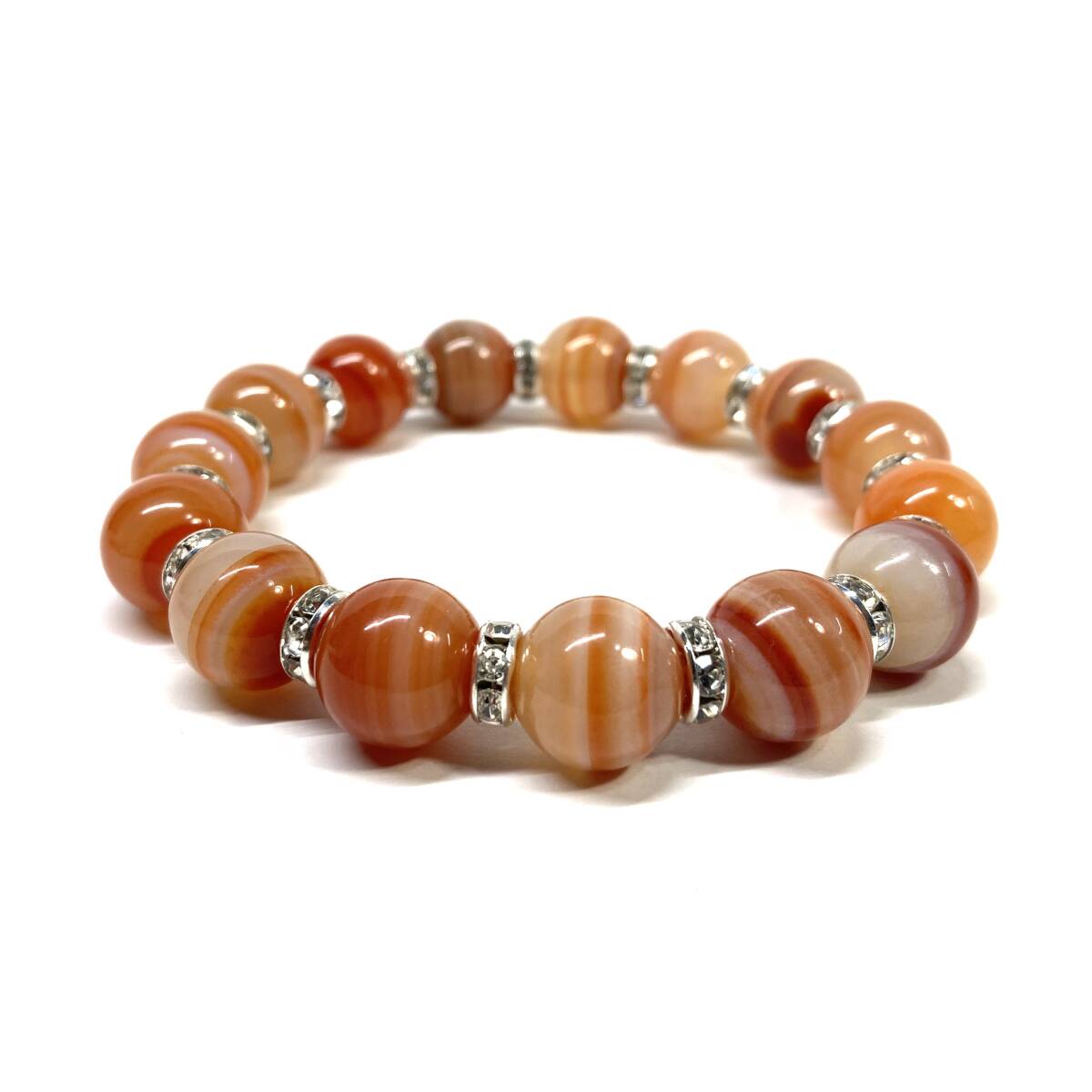 こちらは、12mm玉のカーネリアン・サードニクス(サードオニキス) を使用したパワーストーンブレスレットです。間にはロンデルを挟み高級感を演出しております。男女問わずどんなコーディネートとも合わせ易いブレスレットです。サイズは内周約18cmです。(サイズ変更の場合は取引ナビにてご連絡をお願いします。) 数に限りがございますので気になる方はお早めにどうぞ。