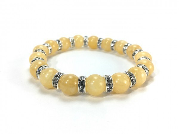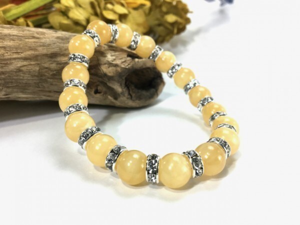こちらは、10mm玉のアラゴナイトを使用したパワーストーンブレスレットです。間にはロンデルを挟み高級感あるブレスレットに仕上げています。石大きさは腕にも馴染みやすいように10mm玉を使用して、サイズは内径約18cmです。(サイズ調節も無料で承っています。サイズ変更の場合は落札後、取引ナビにてご一報くださいませ。) 数に限りがございますので気になる方はお早めにどうぞ。