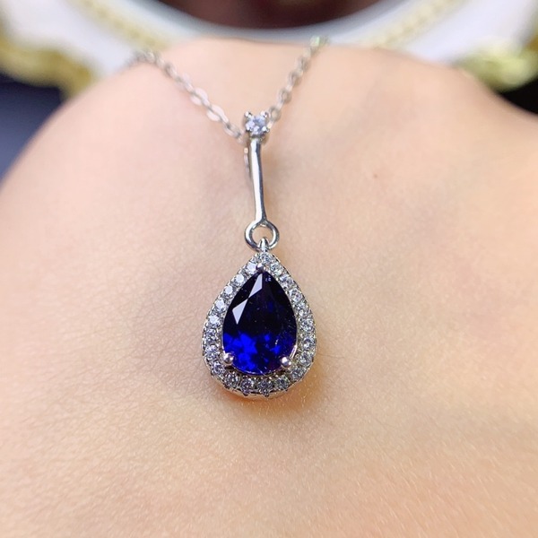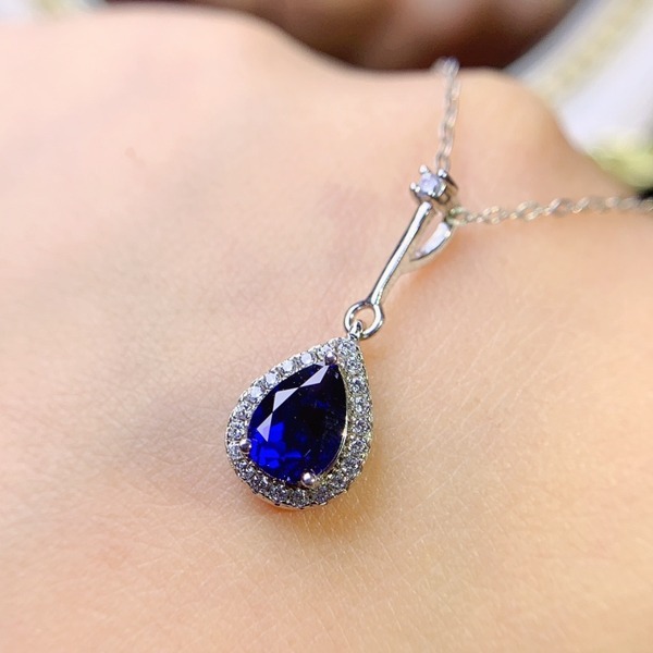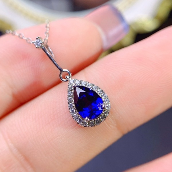 天然サファイアネックレス 5x7mm 女性用 925スターリングシルバー ファインジュエリー バースデーギフト 高級ジュエリー