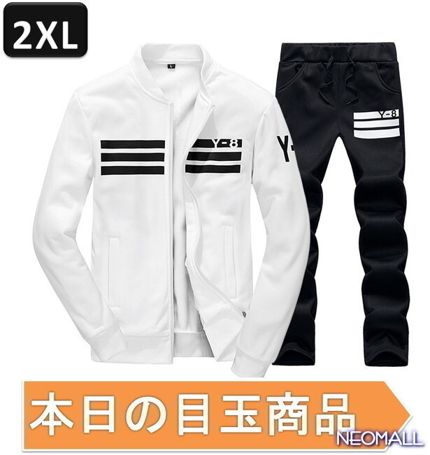 【今日の目玉】メンズセットアップ 上下セット ☆239 ホワイト 2XLサイズ ジャージ スウェット お兄系 部屋着 おしゃれ