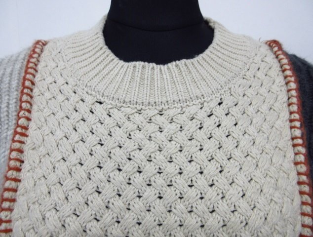 様々な編地を組み合わせた他には無い表情豊かなニット。綺麗な美品です。